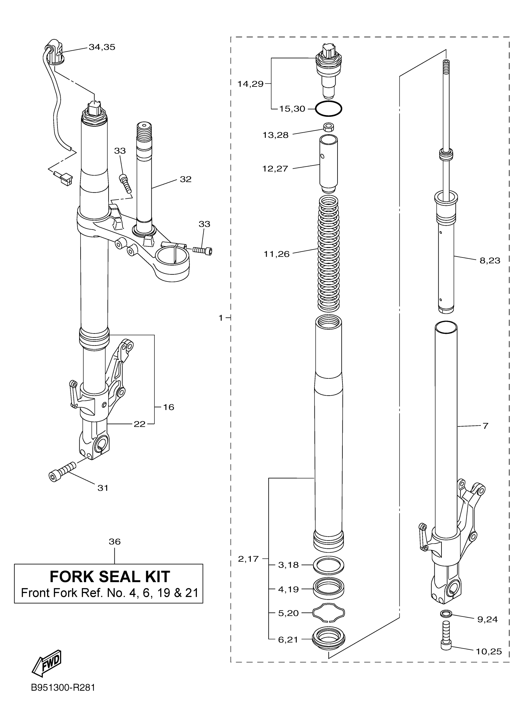 FORK SEAL KIT (TWO FORKS)