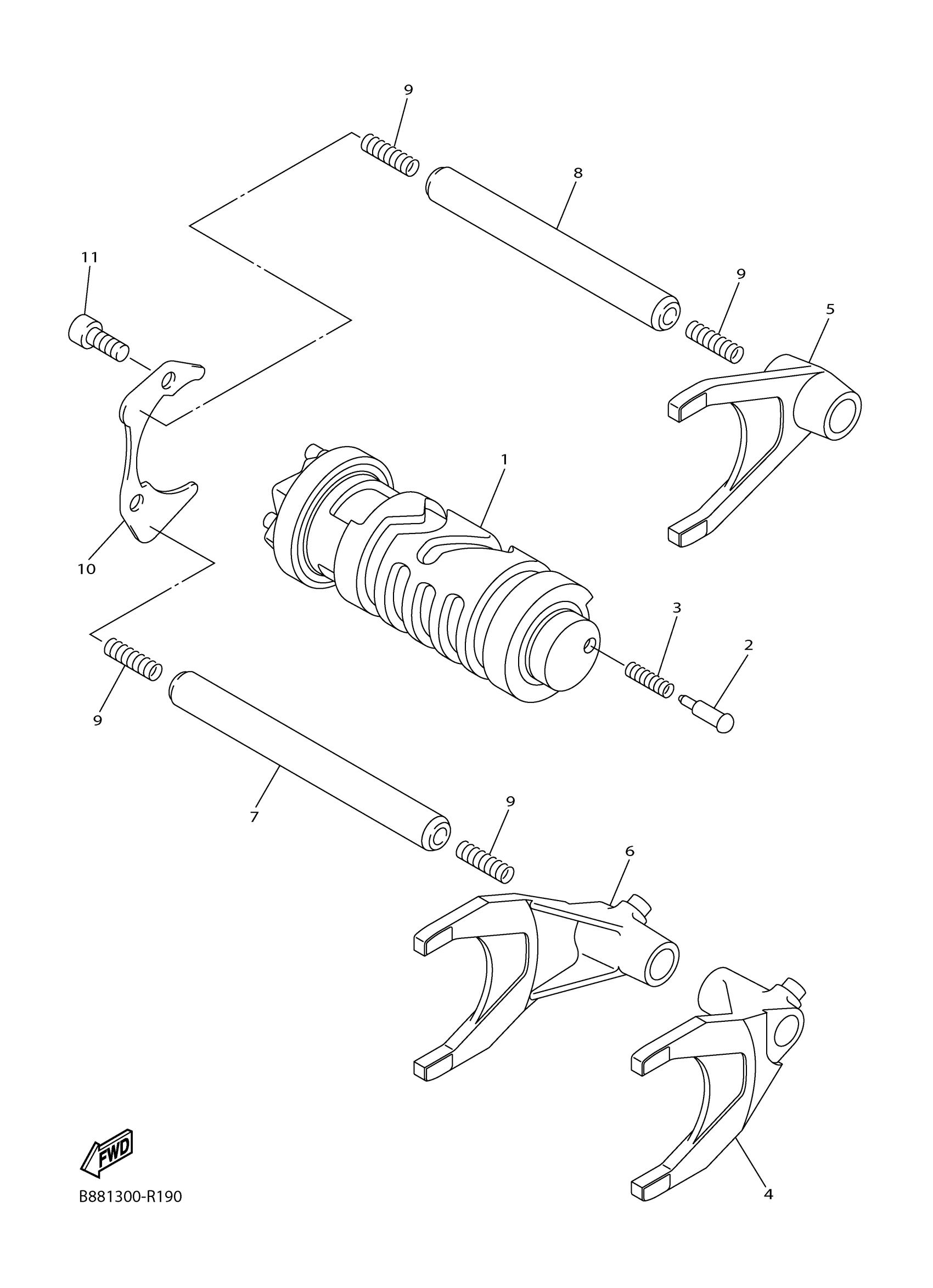 Yamaha FJR13ESJL (FJR1300ES) B96D 2018 SHIFT CAM FORK Diagram