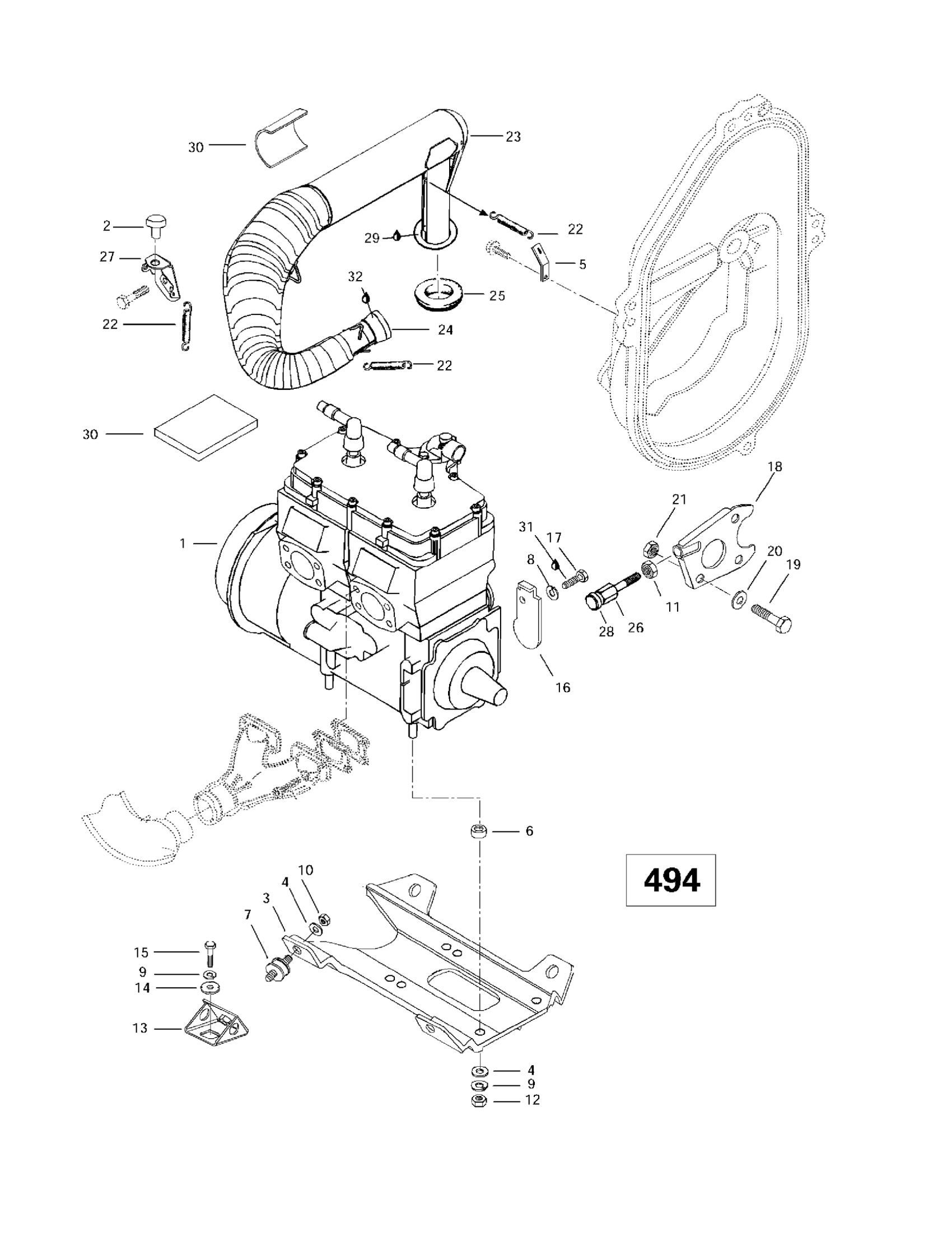 Ski-Doo Formula 500 Deluxe, 1997 Engine Support And Muffler (494) Diagram