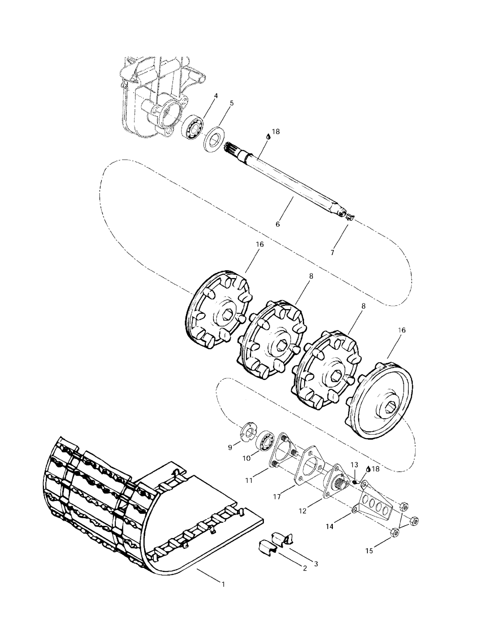 Ski-Doo Formula 500 Deluxe, 1997 Drive Axle And Track Diagram