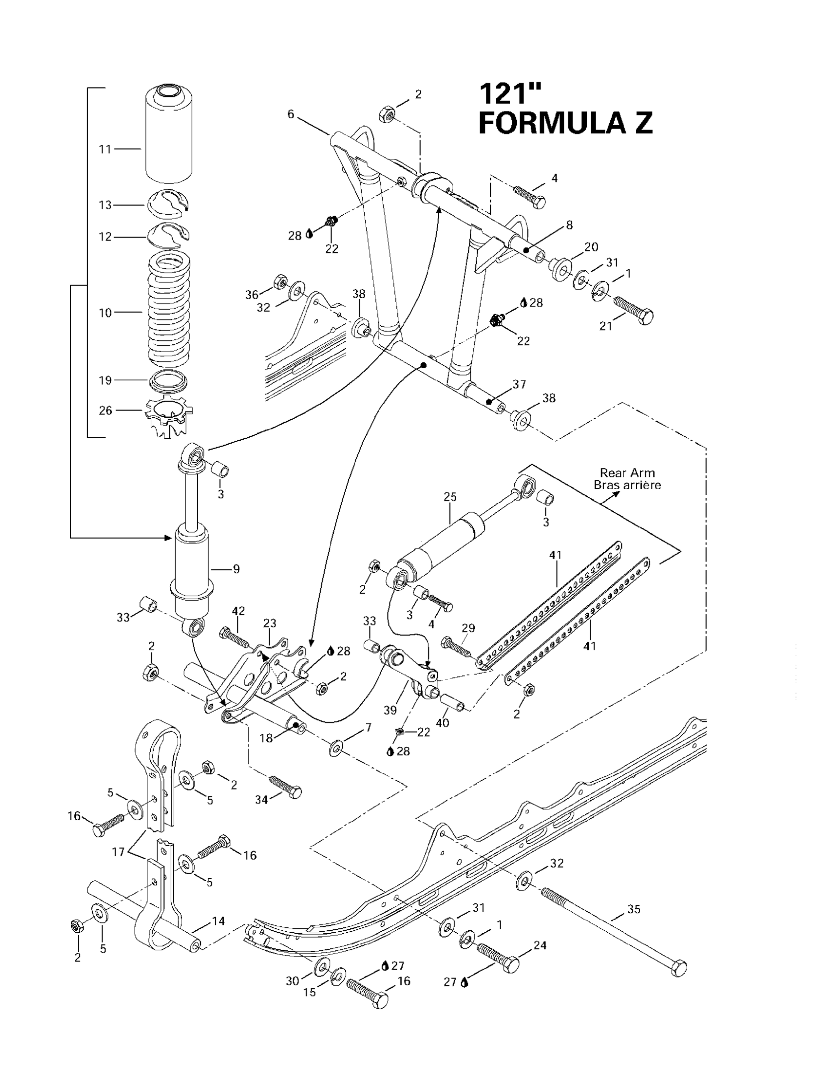 Ski-Doo Formula 500 Deluxe, 1997 Front Arm, Rear Suspension 121” Diagram