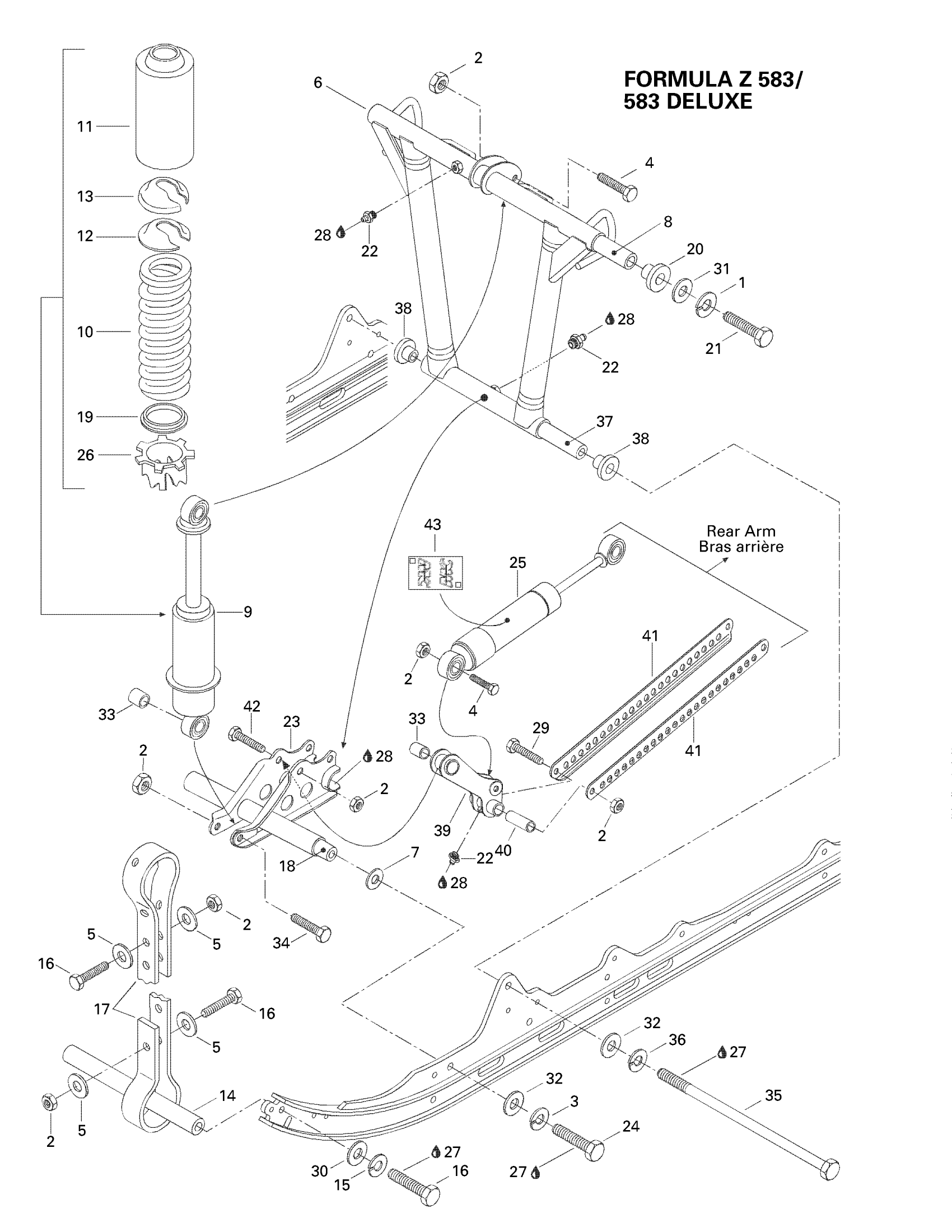 Ski-Doo Formula 500 Deluxe, 1998 Front Arm, Rear Suspension Diagram