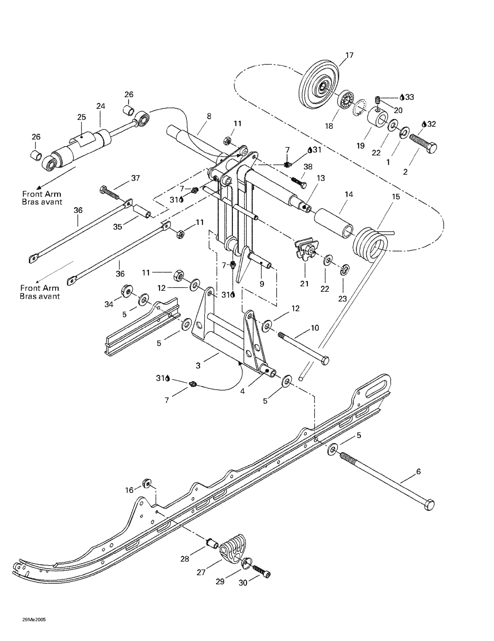 Ski-Doo Formula 500 LC, 2000 Rear Arm Diagram