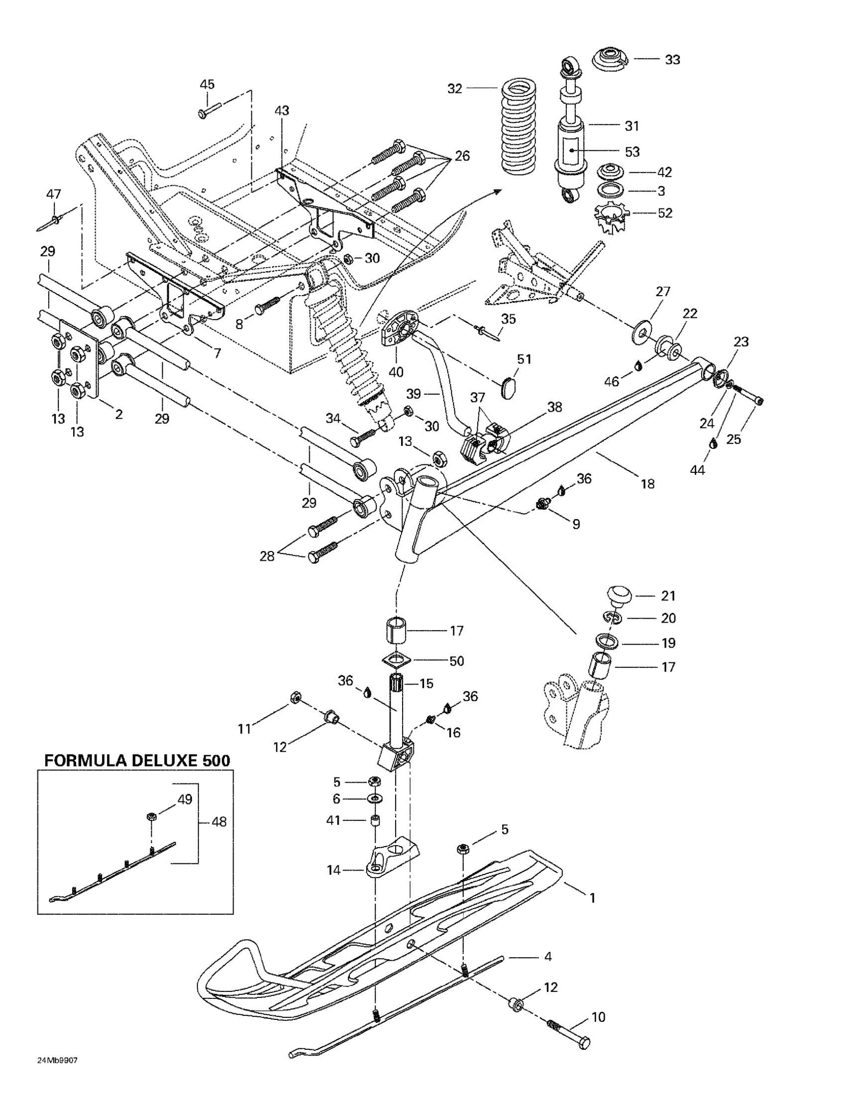 Ski-Doo Formula Deluxe 380/500, 1999 Front Suspension And Ski Diagram