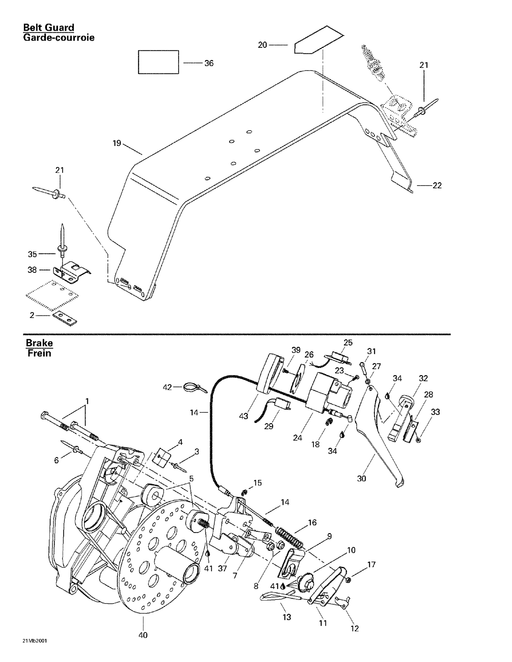 Ski-Doo Formula Deluxe 380/500, 2000 Mechanic Brake And Belt Guard Diagram