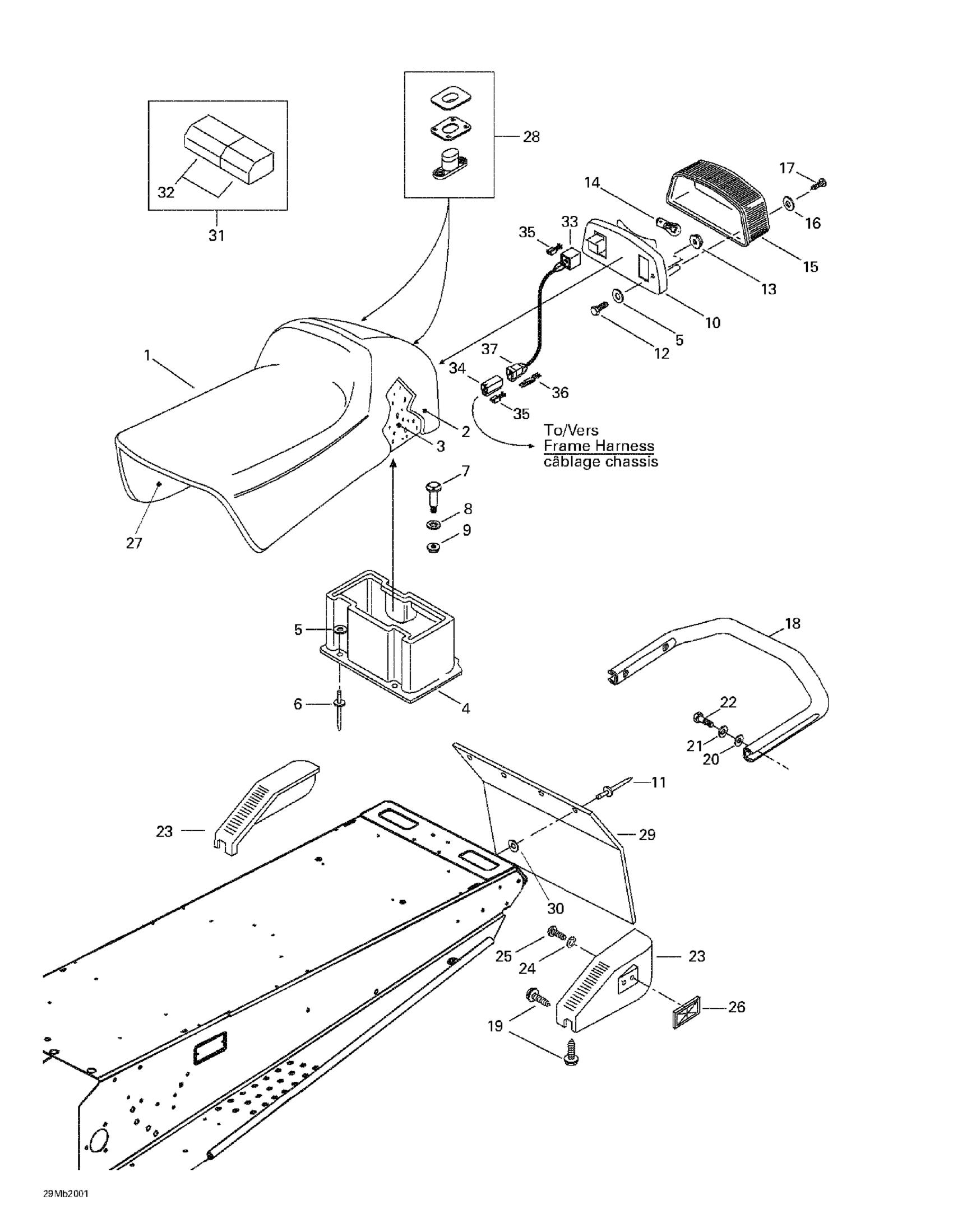 Ski-Doo Formula Deluxe 380/500, 2000 Seat And Accessories Diagram