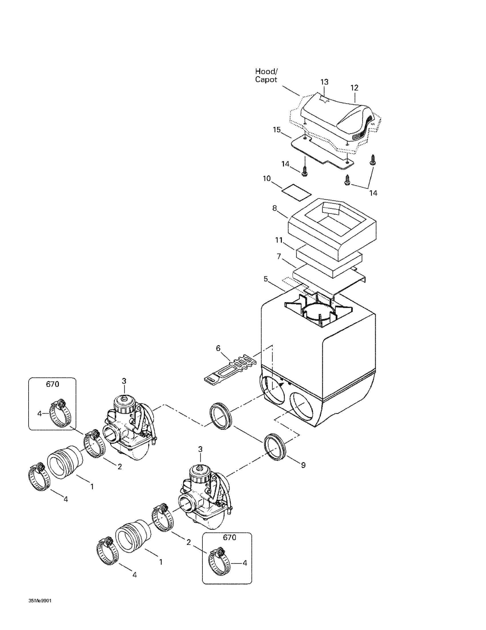 Ski-Doo Formula Deluxe 500 LC/583/670, 1999 Air Intake System Diagram