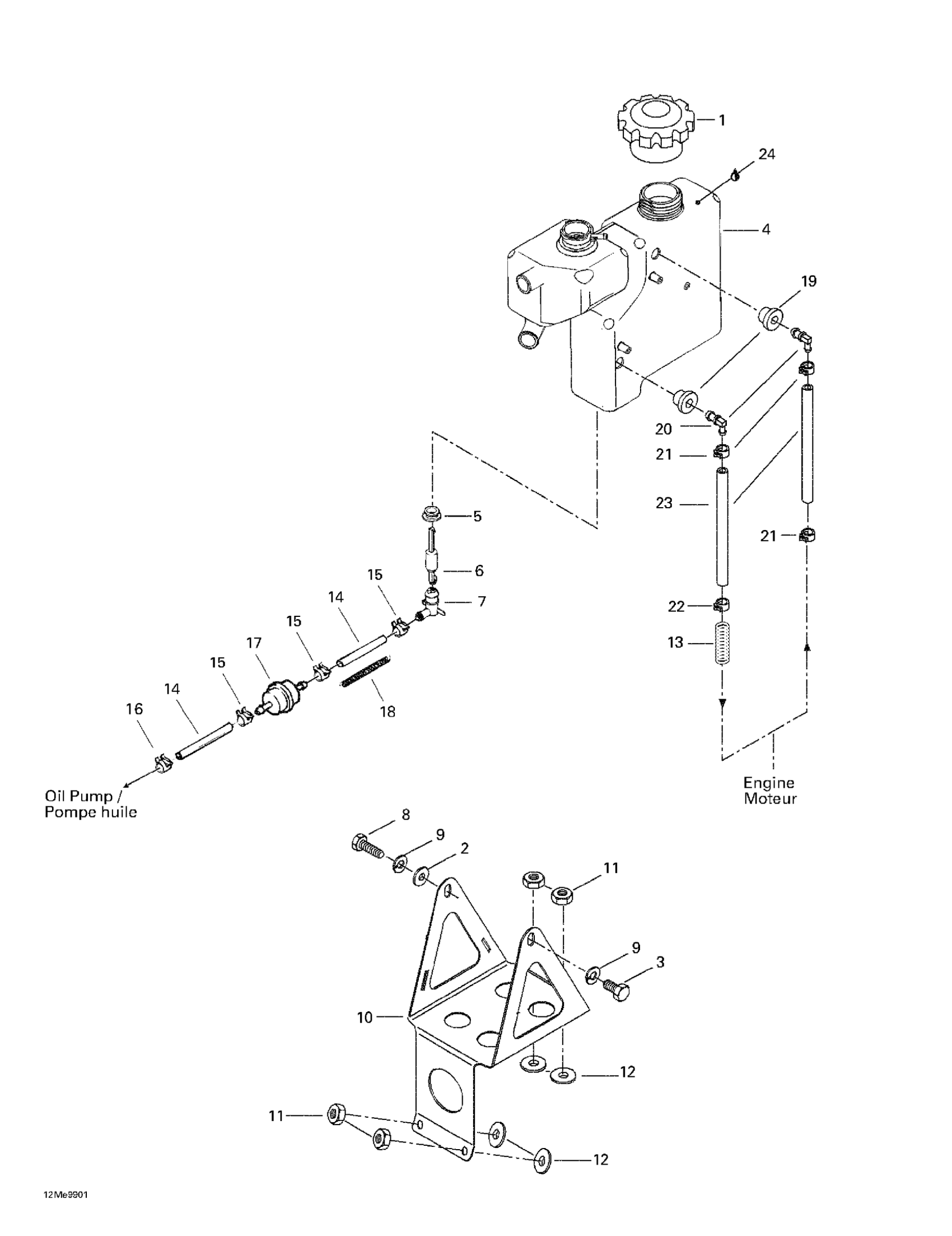 Ski-Doo Formula Deluxe 500 LC/583/670, 1999 Oil Tank And Support Diagram