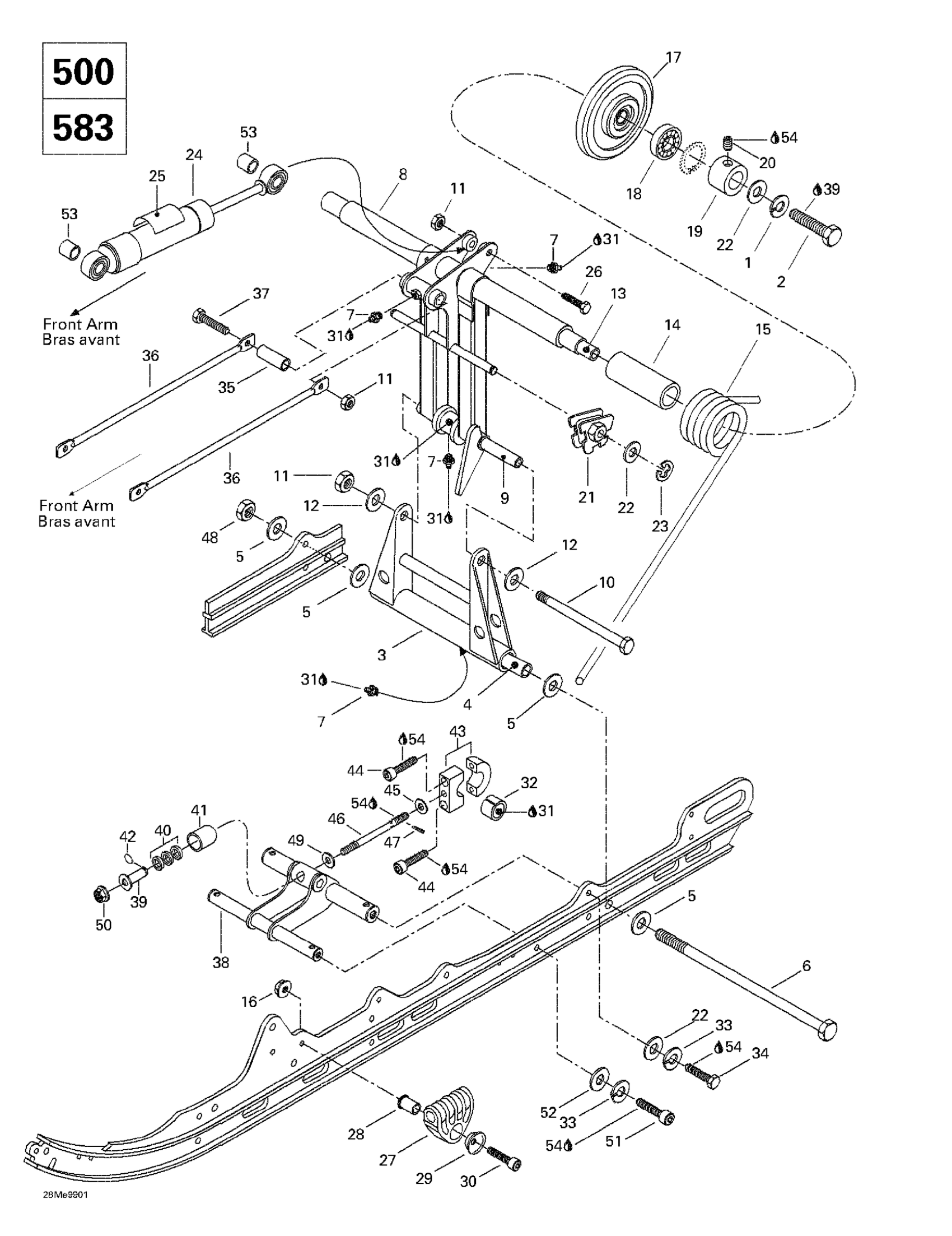 Ski-Doo Formula Deluxe 500 LC/583/670, 1999 Rear Arm, Rear Suspension (500lc,583) Diagram