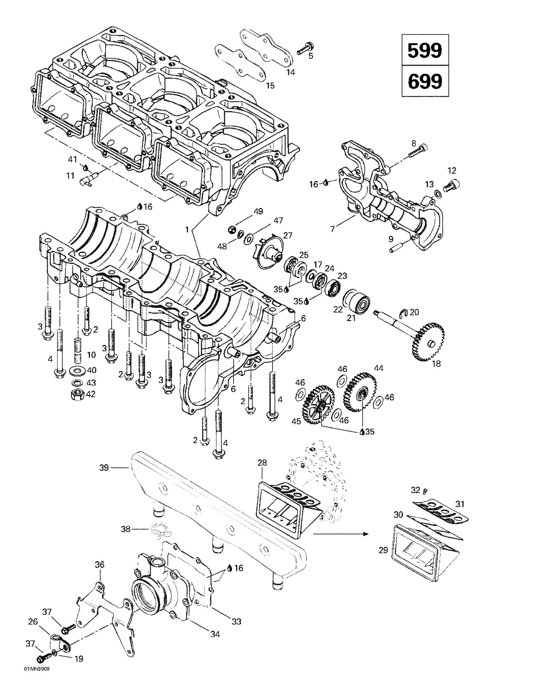 Crankcase, Reed Valve, Water Pump (599, 699)