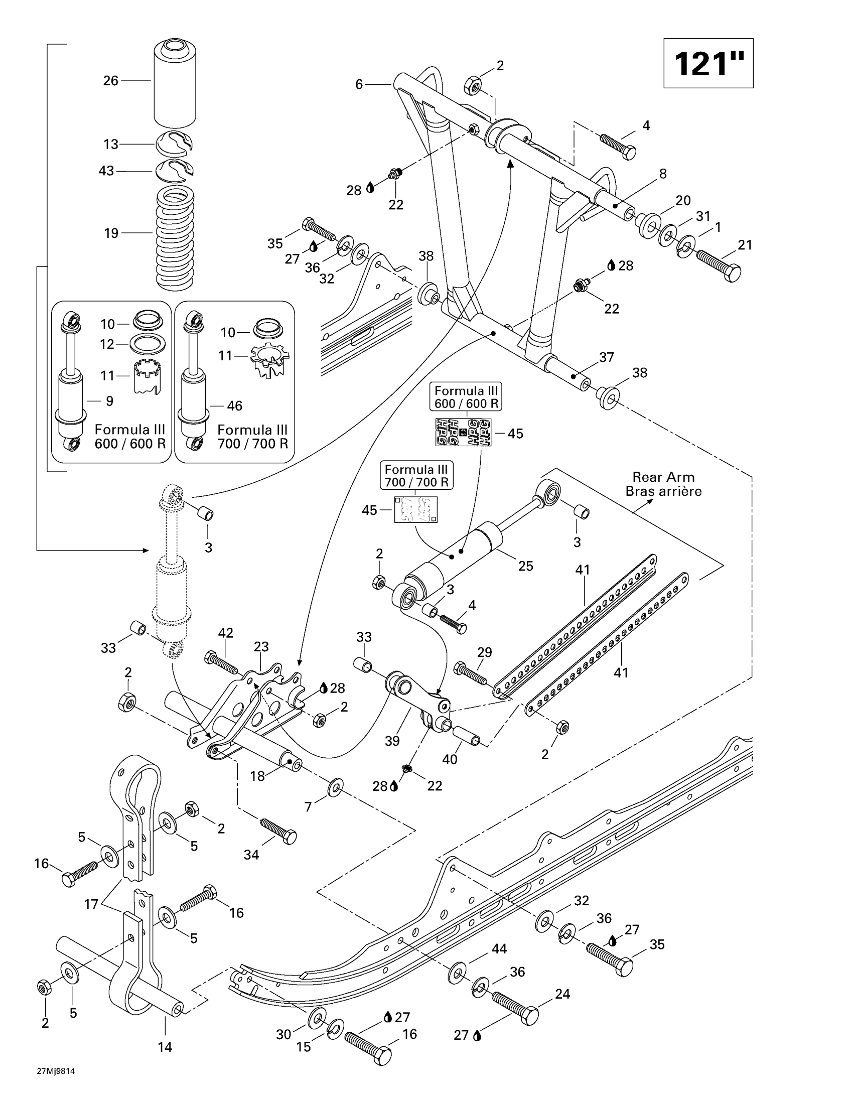 Ski-Doo Formula III 600 LT, 1998 Front Arm, Rear Suspension (121’’) Diagram