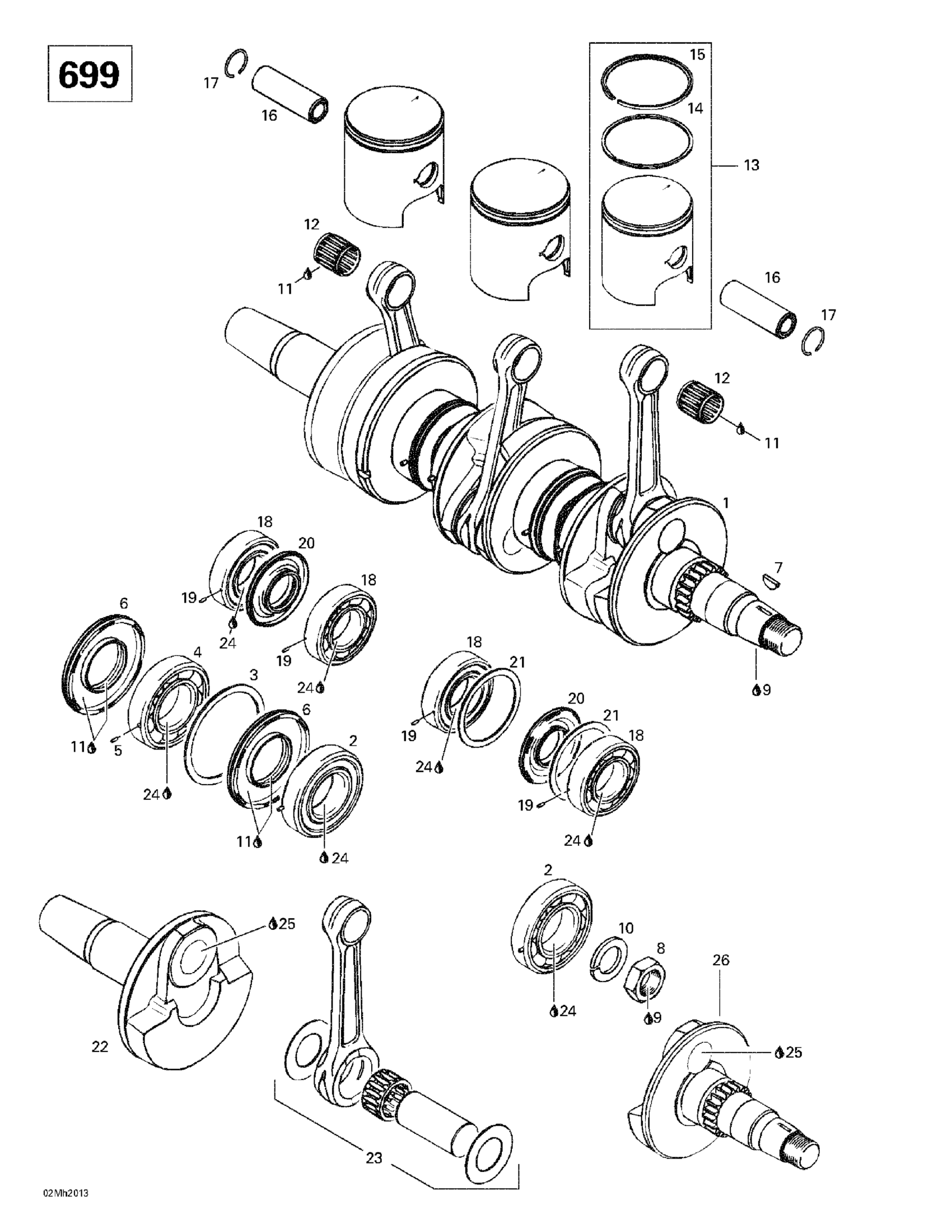 Ski-Doo Formula III 700 R, 2000 Crankshaft And Pistons Diagram