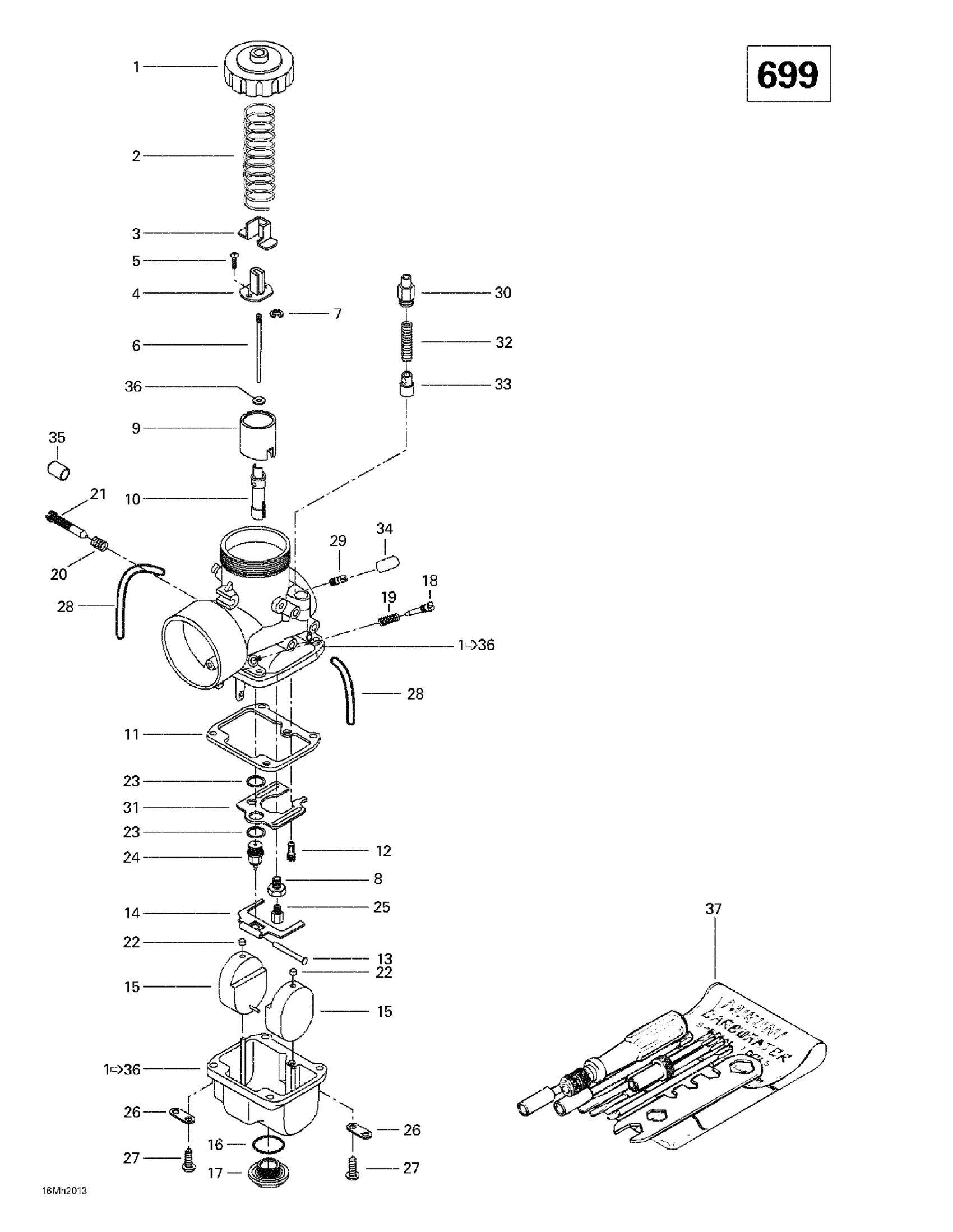 VM 38-435 Carburetor | Includes 1 - 36. Formula III 700 R.
