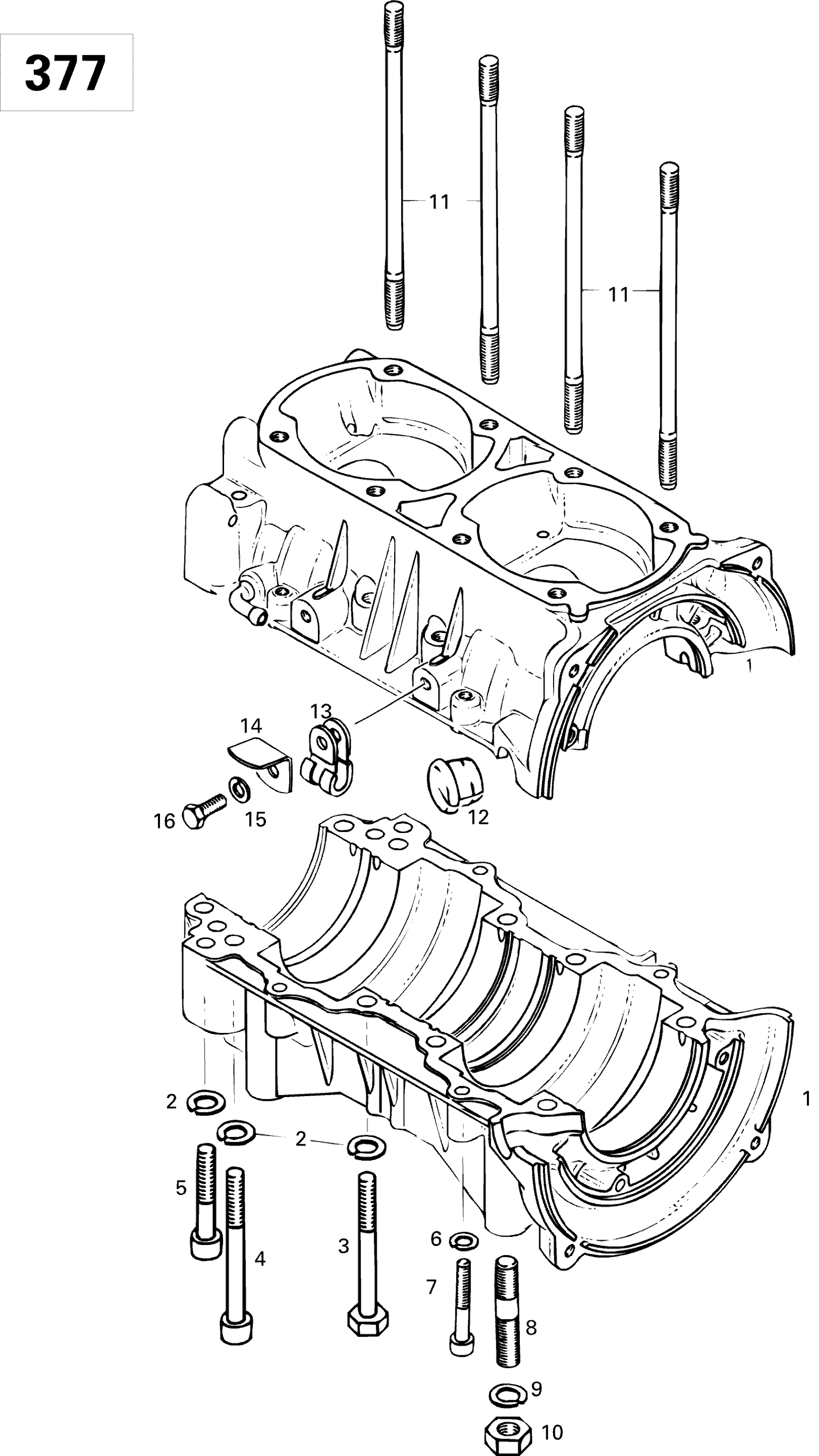 Ski-Doo Formula S, 1996 Crankcase (377) Diagram