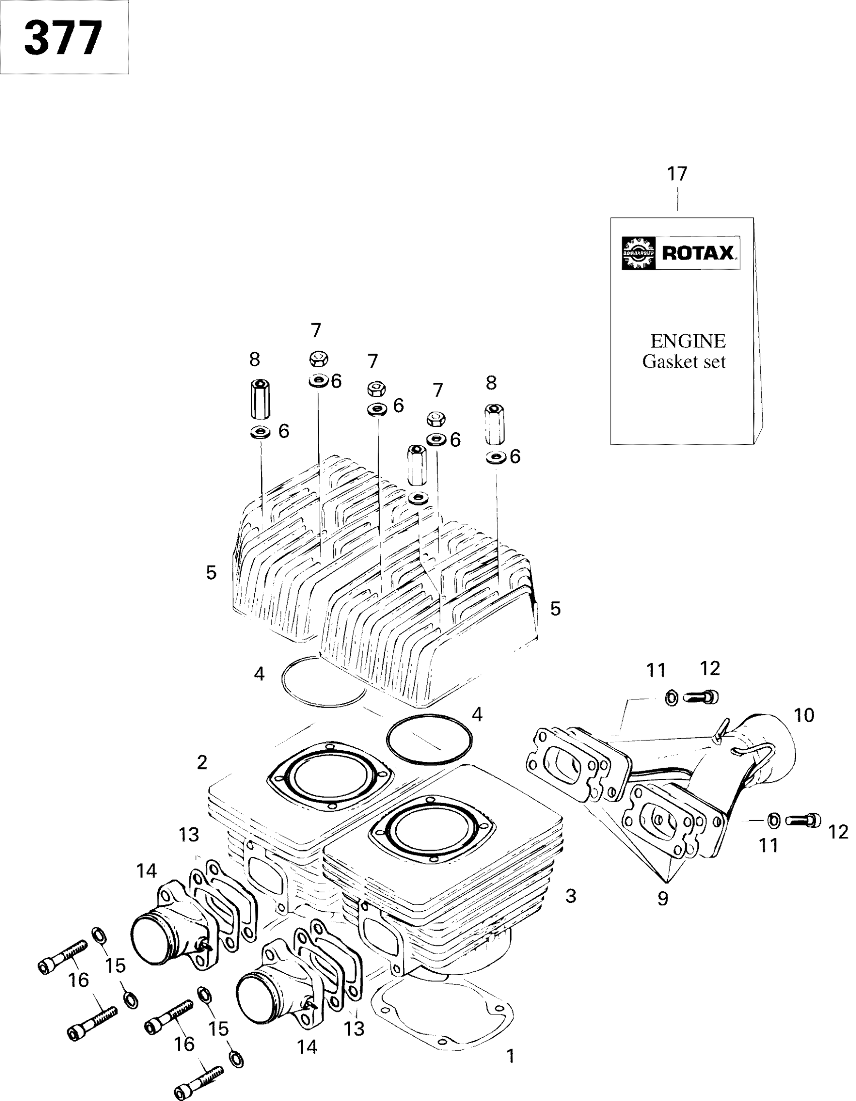 Ski-Doo Formula S, 1996 Cylinder And Exhaust Manifold 377 Diagram