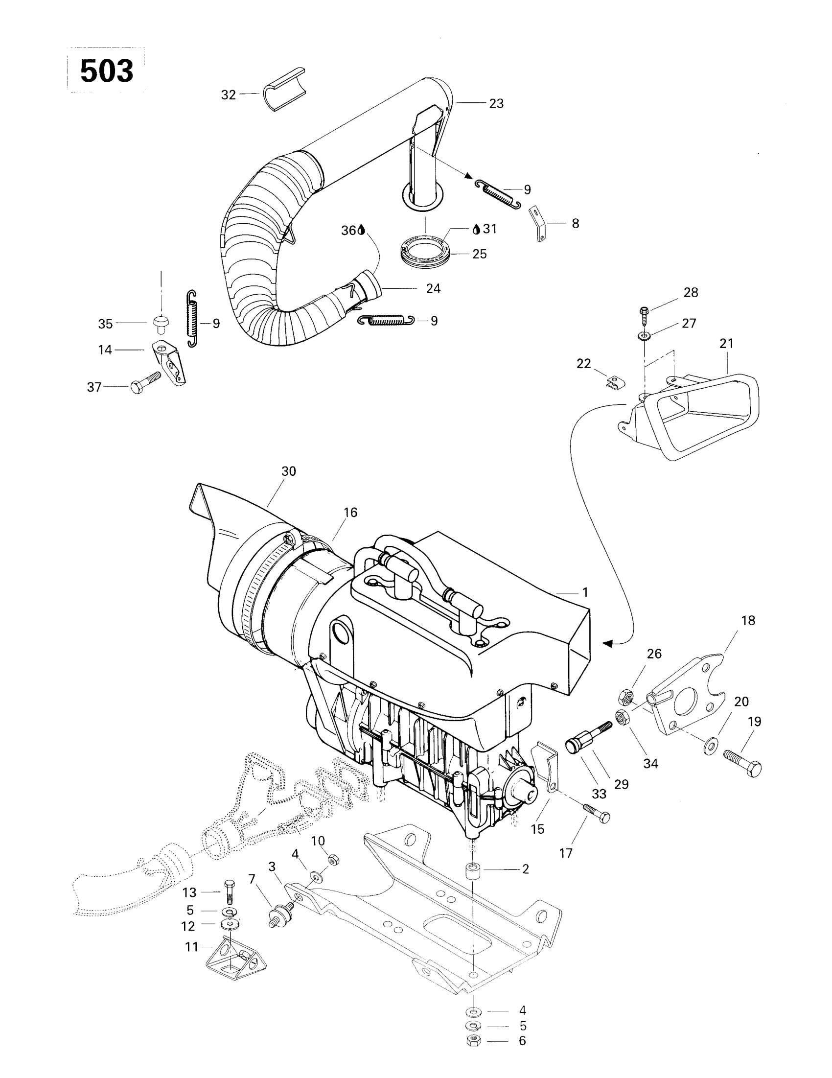 Ski-Doo Formula S, 1997 Engine Support And Muffler (503) Diagram