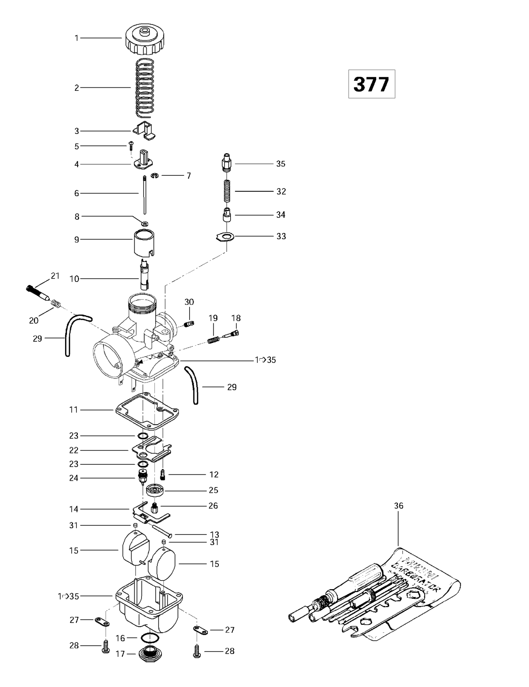 Carburetor VM 30-190 | Includes 1 - 35. Formula S.