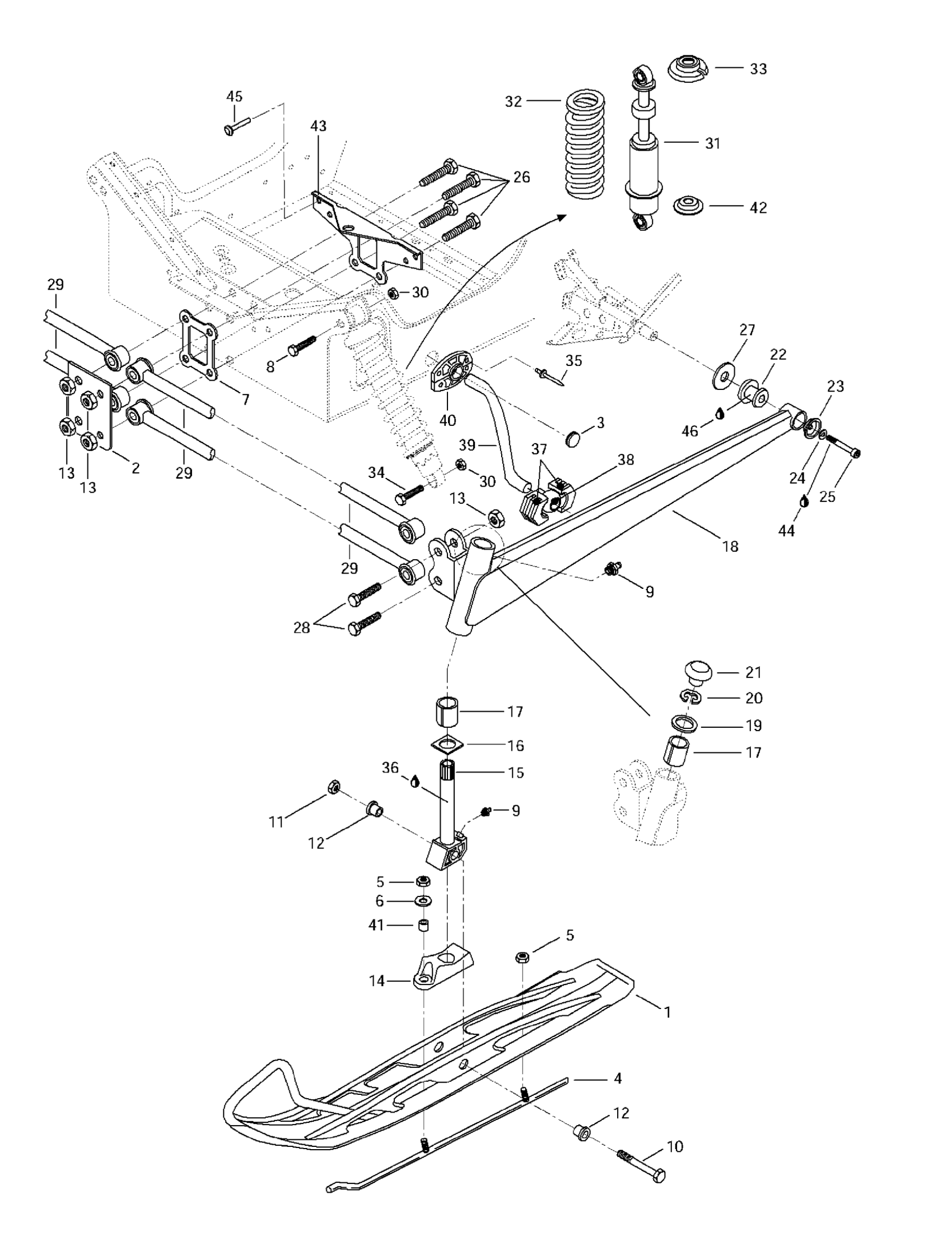 Ski-Doo Formula S, 1997 Front Suspension And Ski Diagram