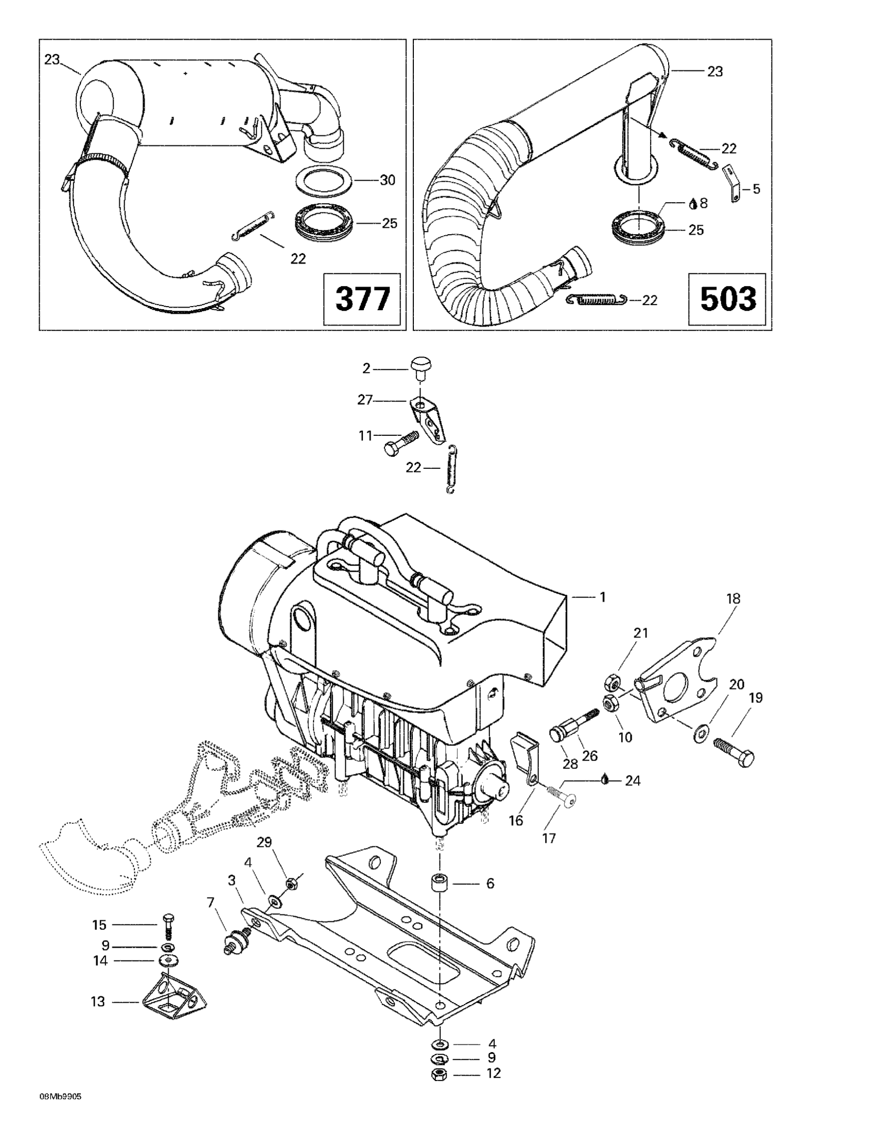 Ski-Doo Formula S, 1999 Engine Support And Muffler Diagram