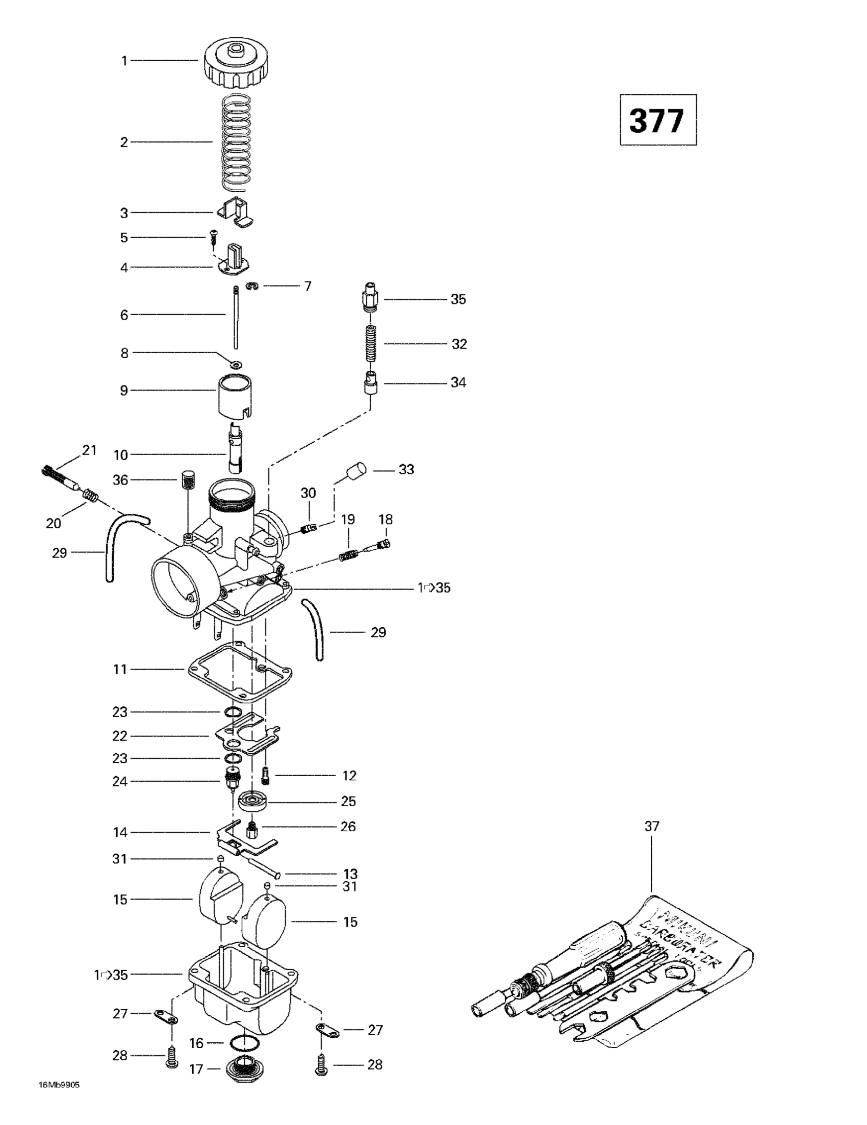 Ski-Doo Formula S, 1999 Carburetors (377) Diagram