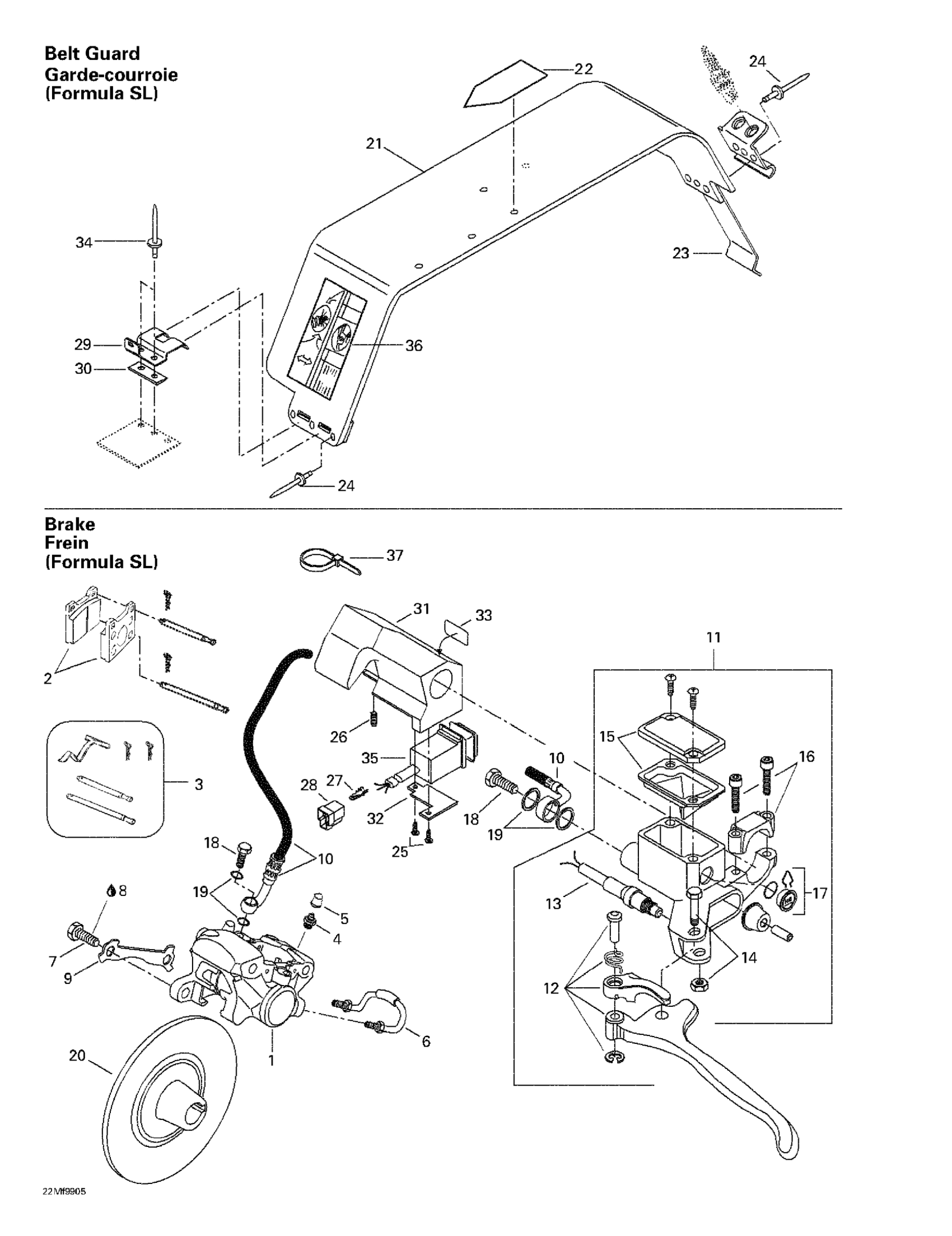 Ski-Doo Formula S, 1999 Hydraulic Brake And Belt Guard Diagram