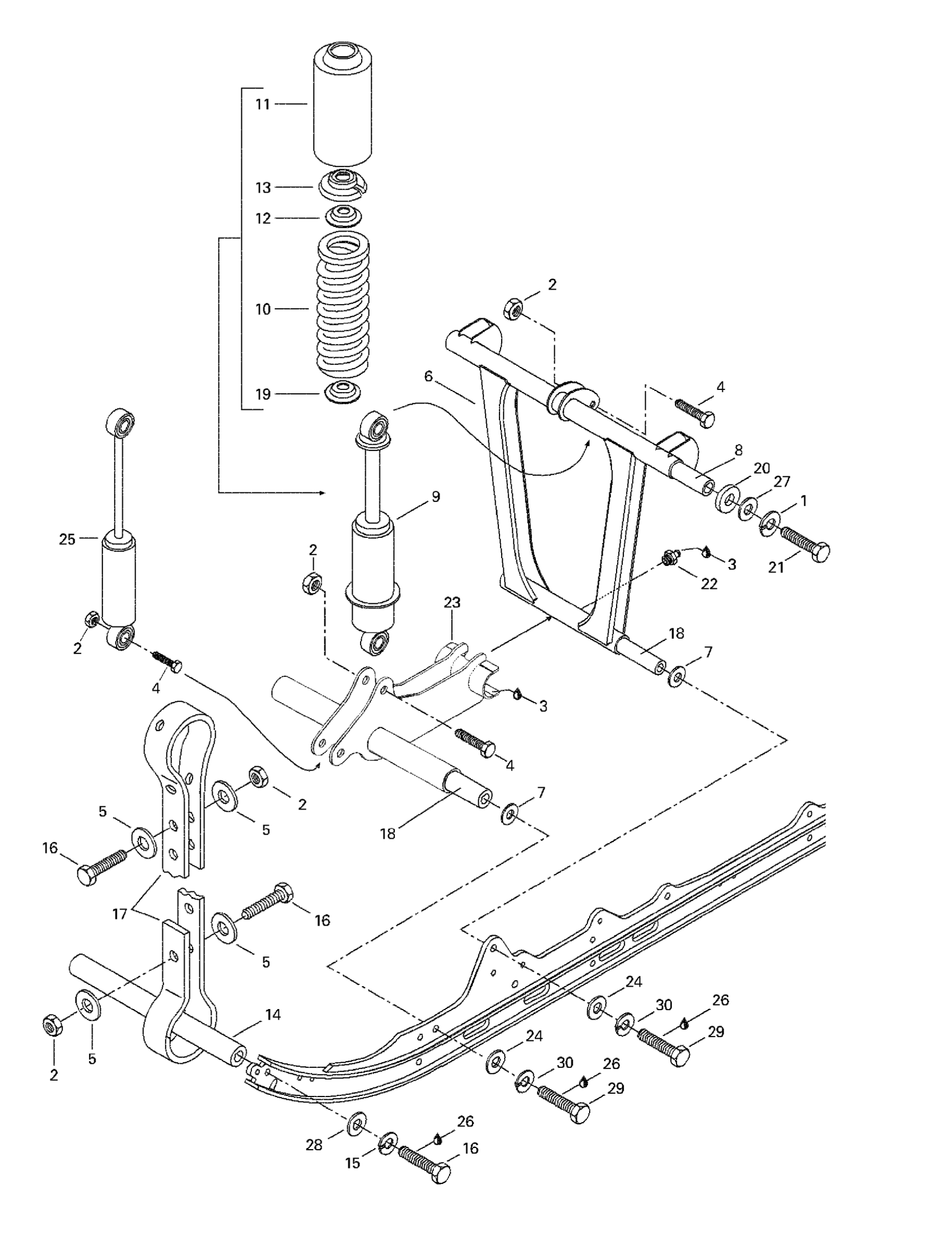 Ski-Doo Formula S Electric, 1998 Front Arm, Rear Suspension Diagram