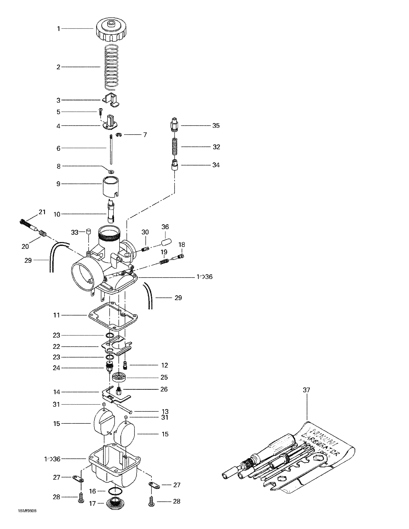 Carburetor VM 34 513 (PTO) | Includes 1 - 36.