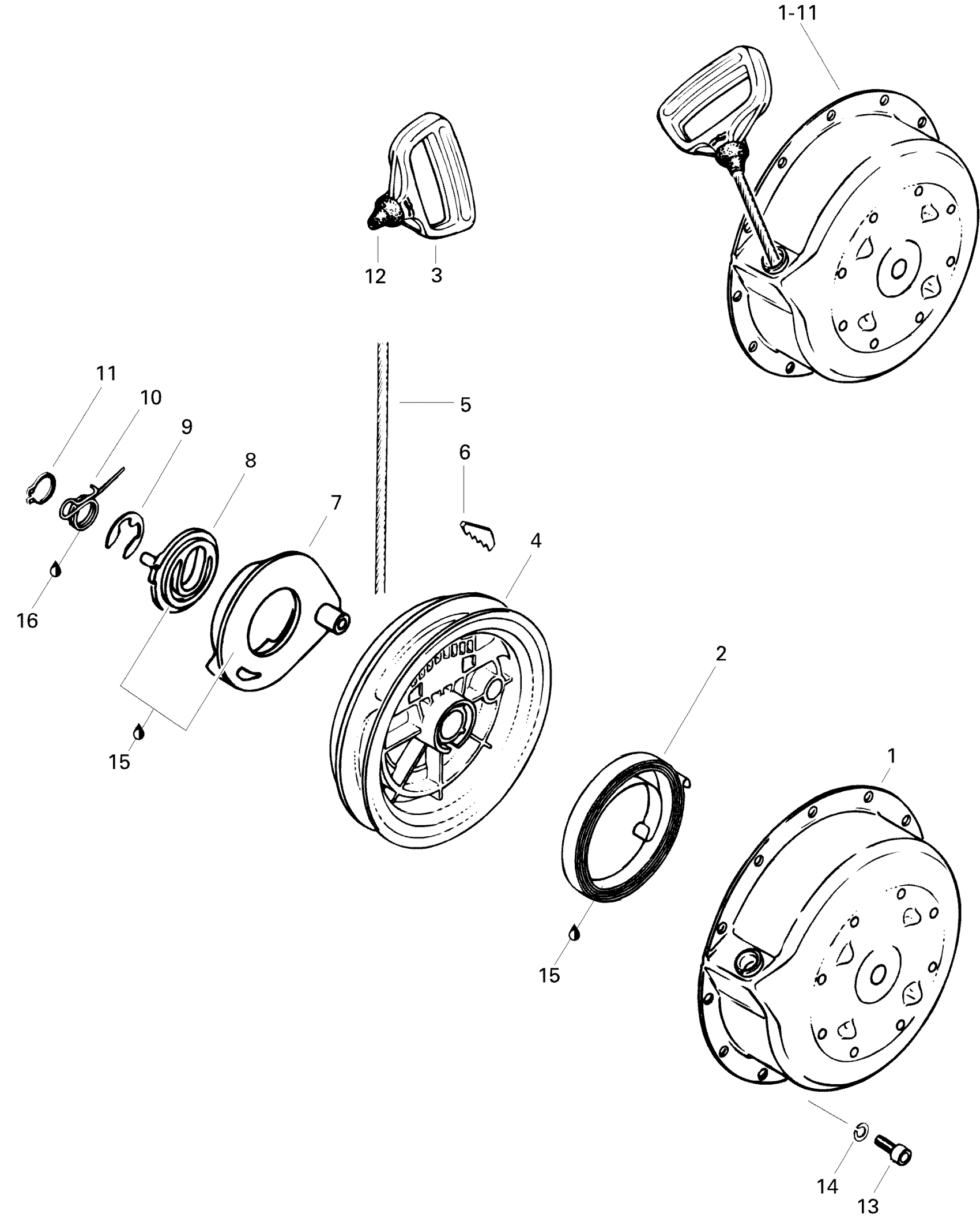 Rewind Starter Ass'y | Includes 1 - 11.