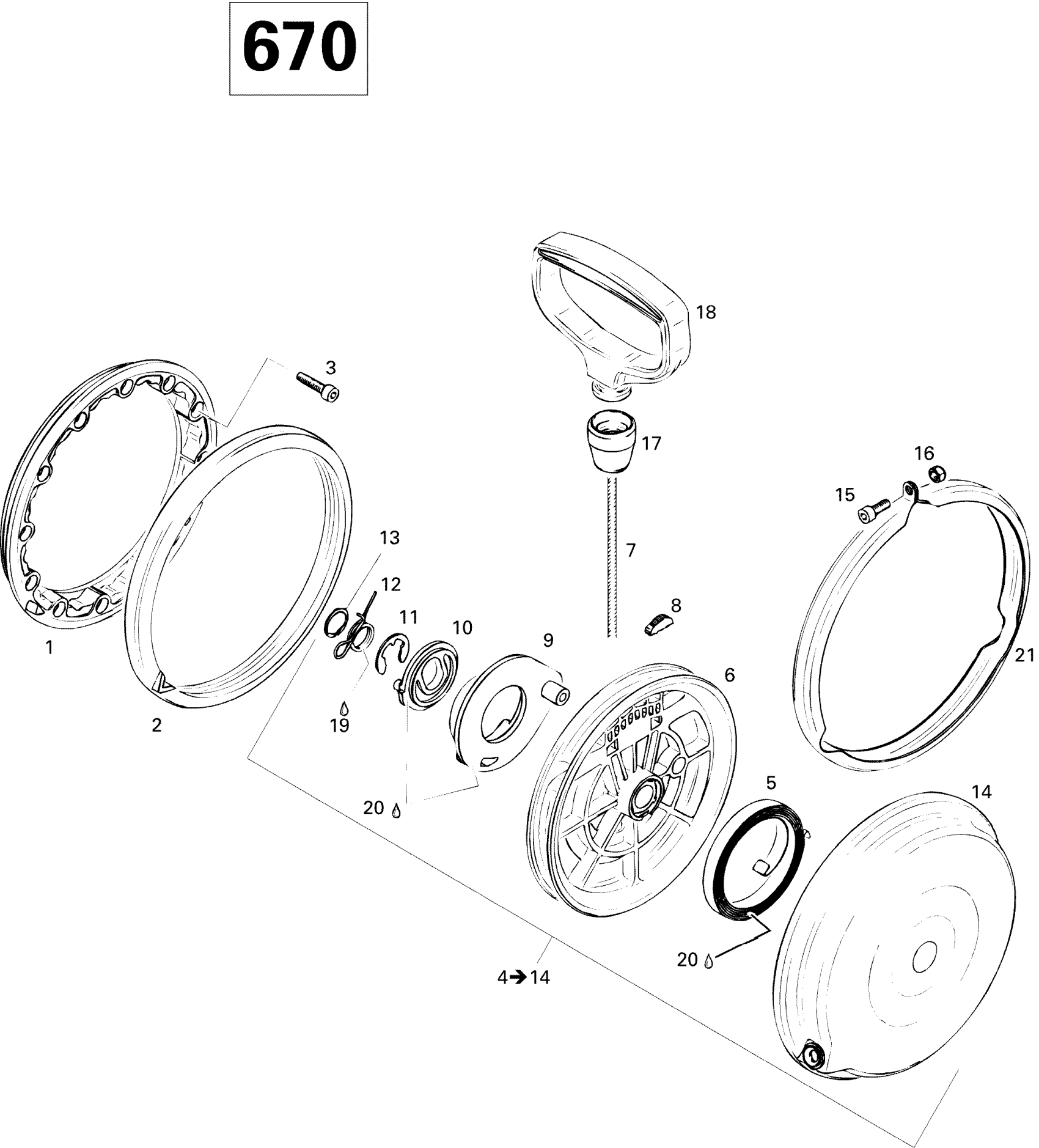 Ski-Doo Formula SS, 1996 Rewind Starter 670 Diagram