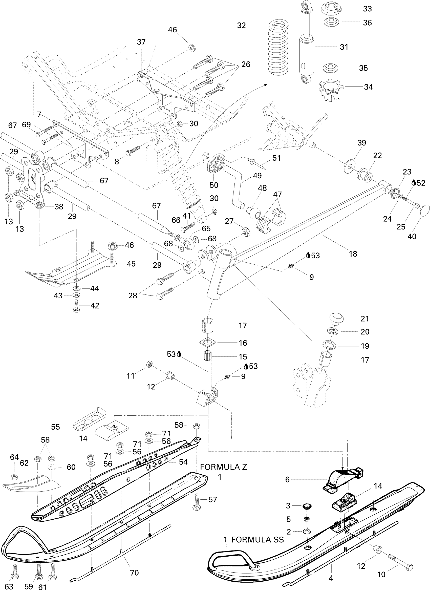 Ski-Doo Formula Z, 1996 Front Suspension And Ski Formula Z Diagram