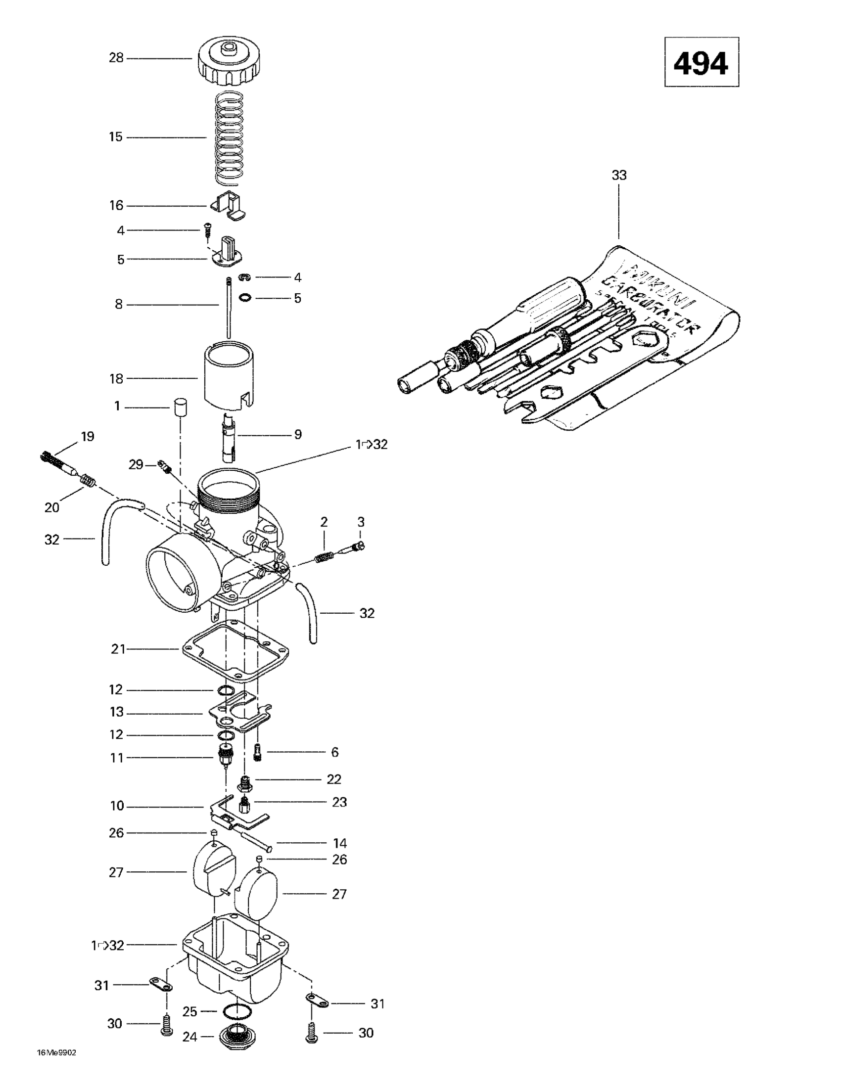 Ski-Doo Formula Z 500/583/670, 1999 Carburetors (494) Diagram