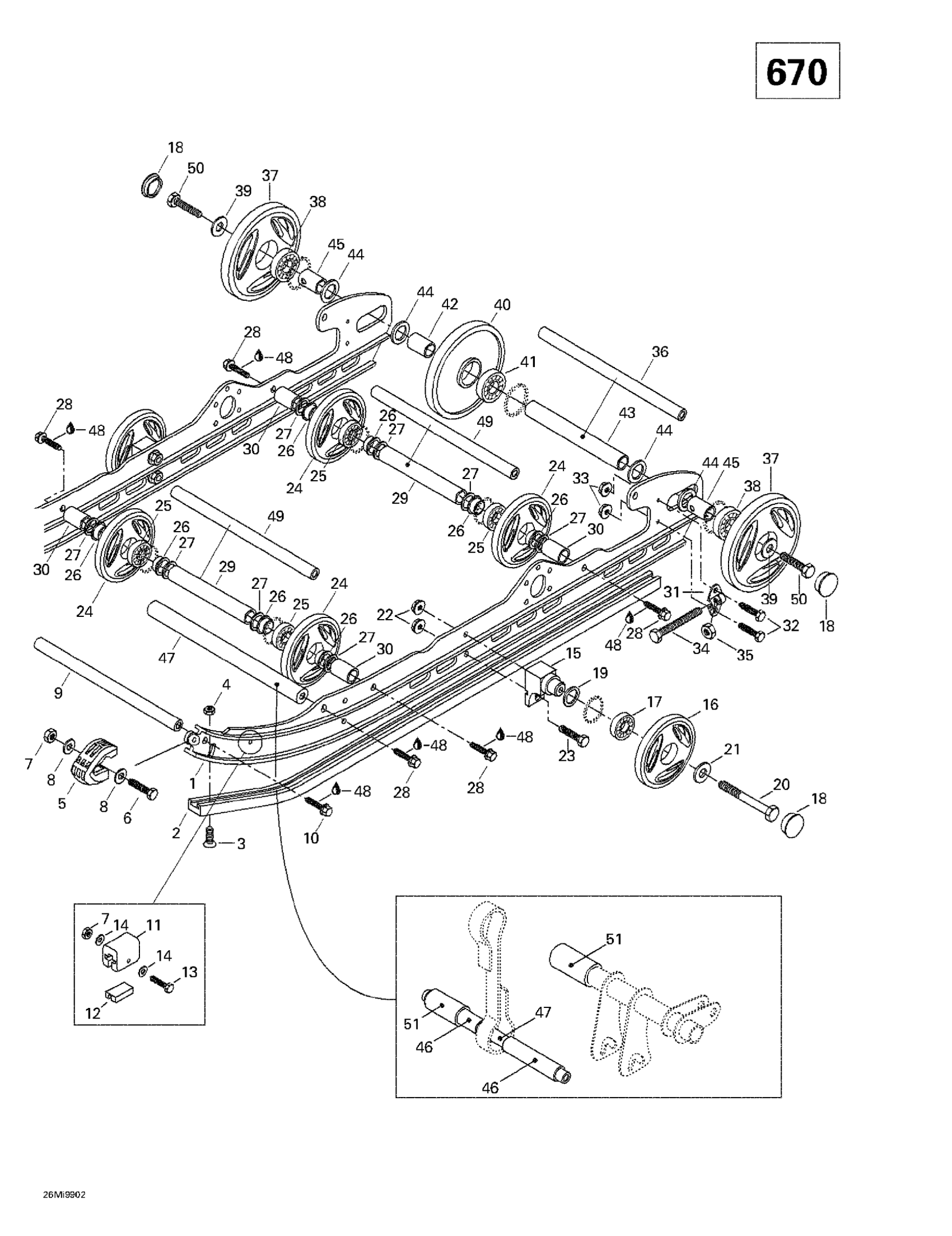Ski-Doo Formula Z 500/583/670, 1999 Rear Suspension (670) Diagram