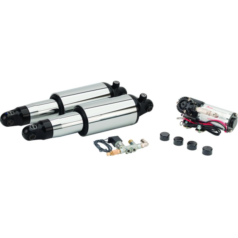 At the core of this system are two custom nitrogen charged FOX shock absorbers. Then, using a patent-pending design, Arnott adds a rugged Goodyear® air spring, ensuring superior comfort, ride quality, and durability. Arnott pairs your shocks with a small but powerful compressor, application-specific mounting bracket, and air distribution valve block which include a muffler to control how fast air is released. Each kit includes everything you need for a fast and flawless installation including Detailed Installation Manual, fused wiring harness and relay assembly, handlebar-mounted inflation switch, all necessary tubing, cable ties, fittings, bolt covers, and mounting accessories.