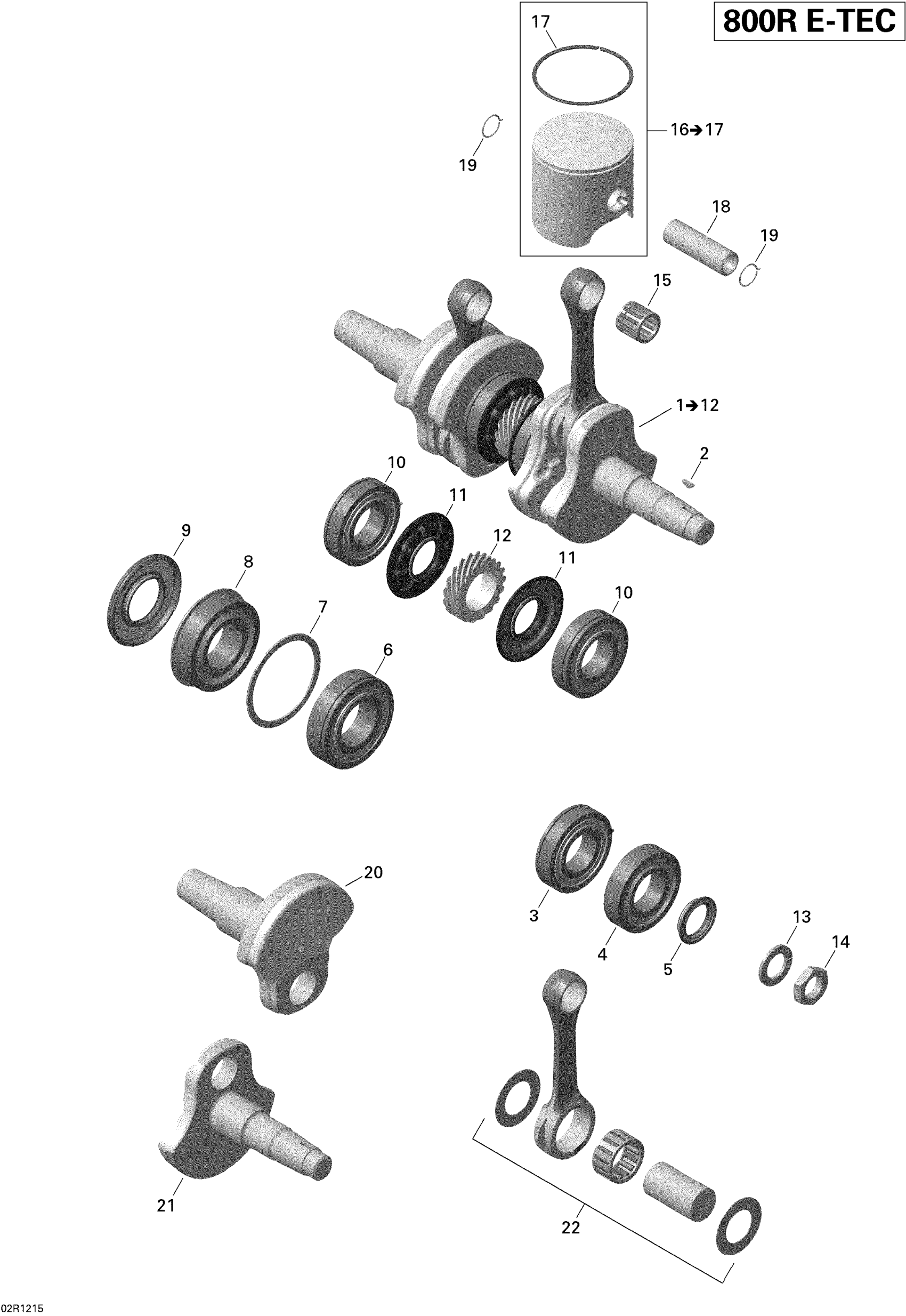 Ski-Doo Freeride 137 & 146 & 154 800RETEC XP, 2012 Crankshaft And Pistons Diagram