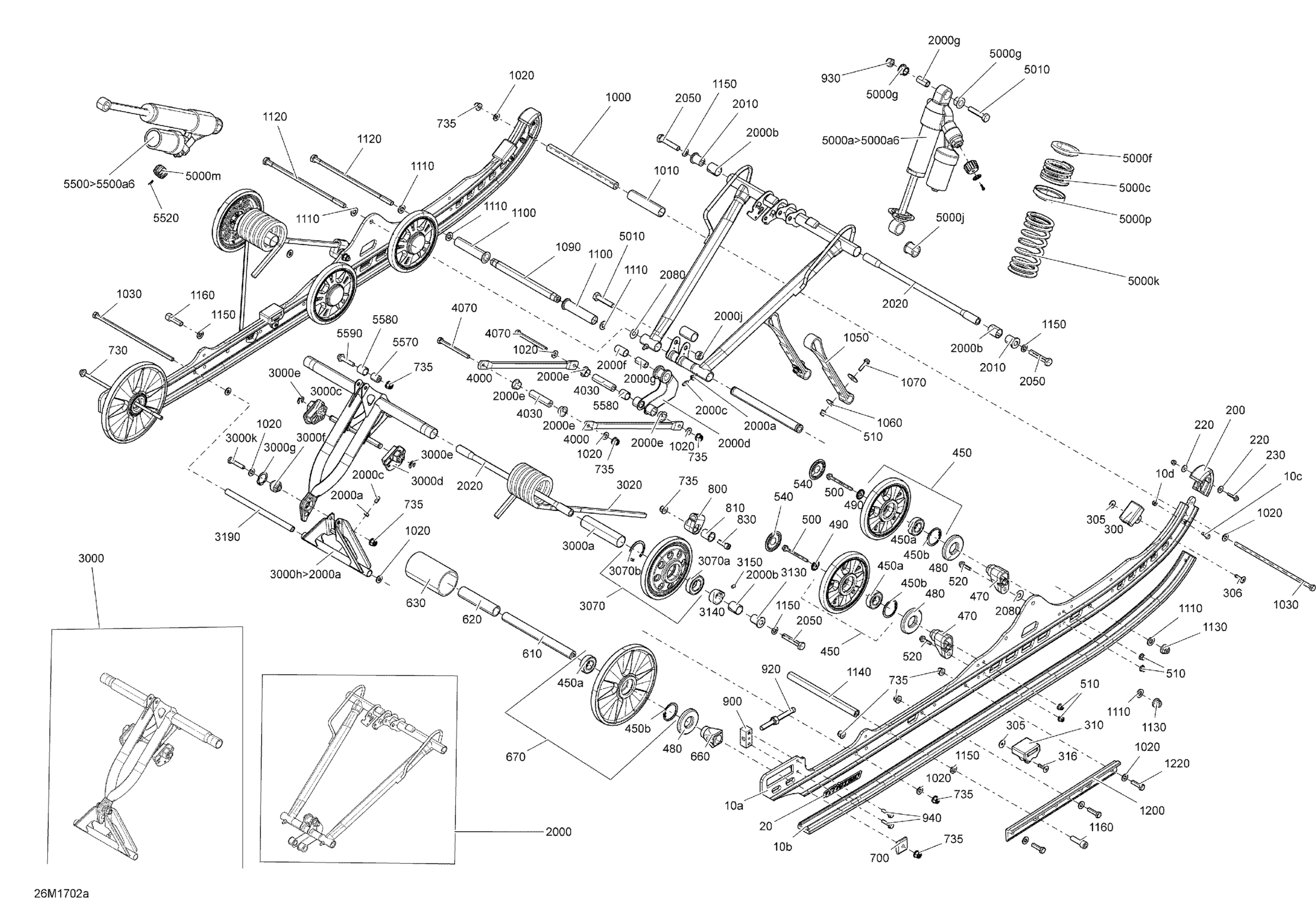 Ski-Doo FREERIDE, 2017 08- Rear Suspension - Model 146 and 154 Diagram
