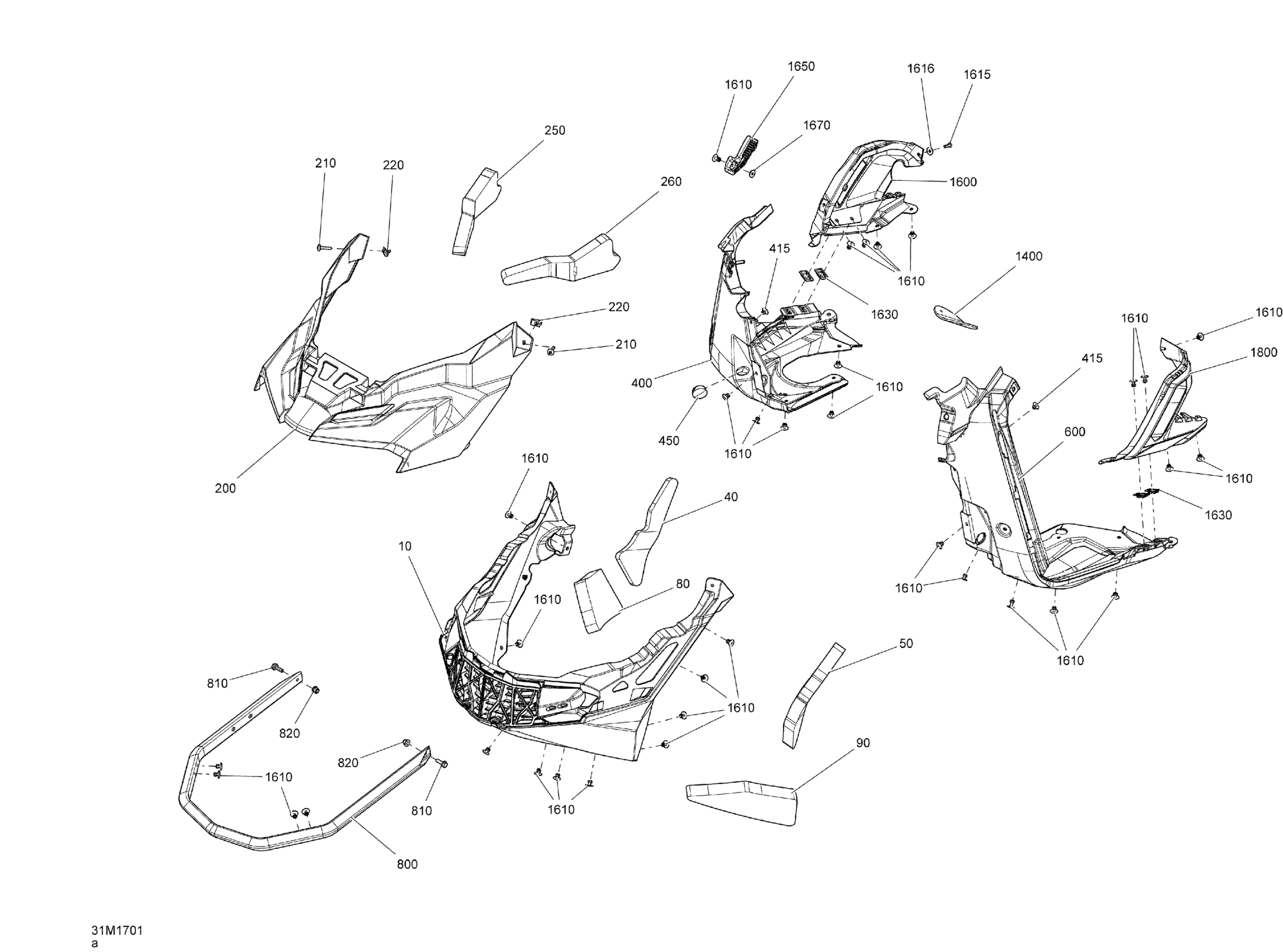 Ski-Doo FREERIDE, 2017 Bottom Pan - All Models Diagram