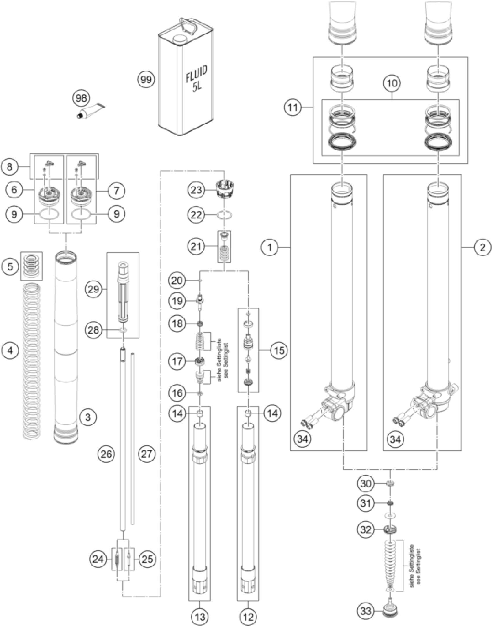 KTM Freeride 250 F 2018 FRONT FORK DISASSEMBLED Diagram