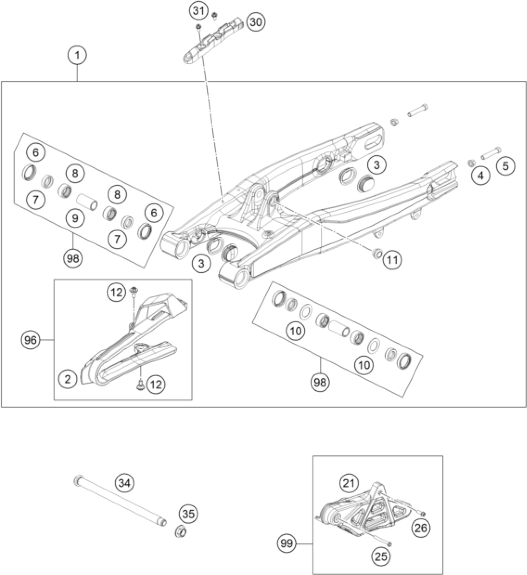 KTM FREERIDE E-SX 2014 SWING ARM Diagram