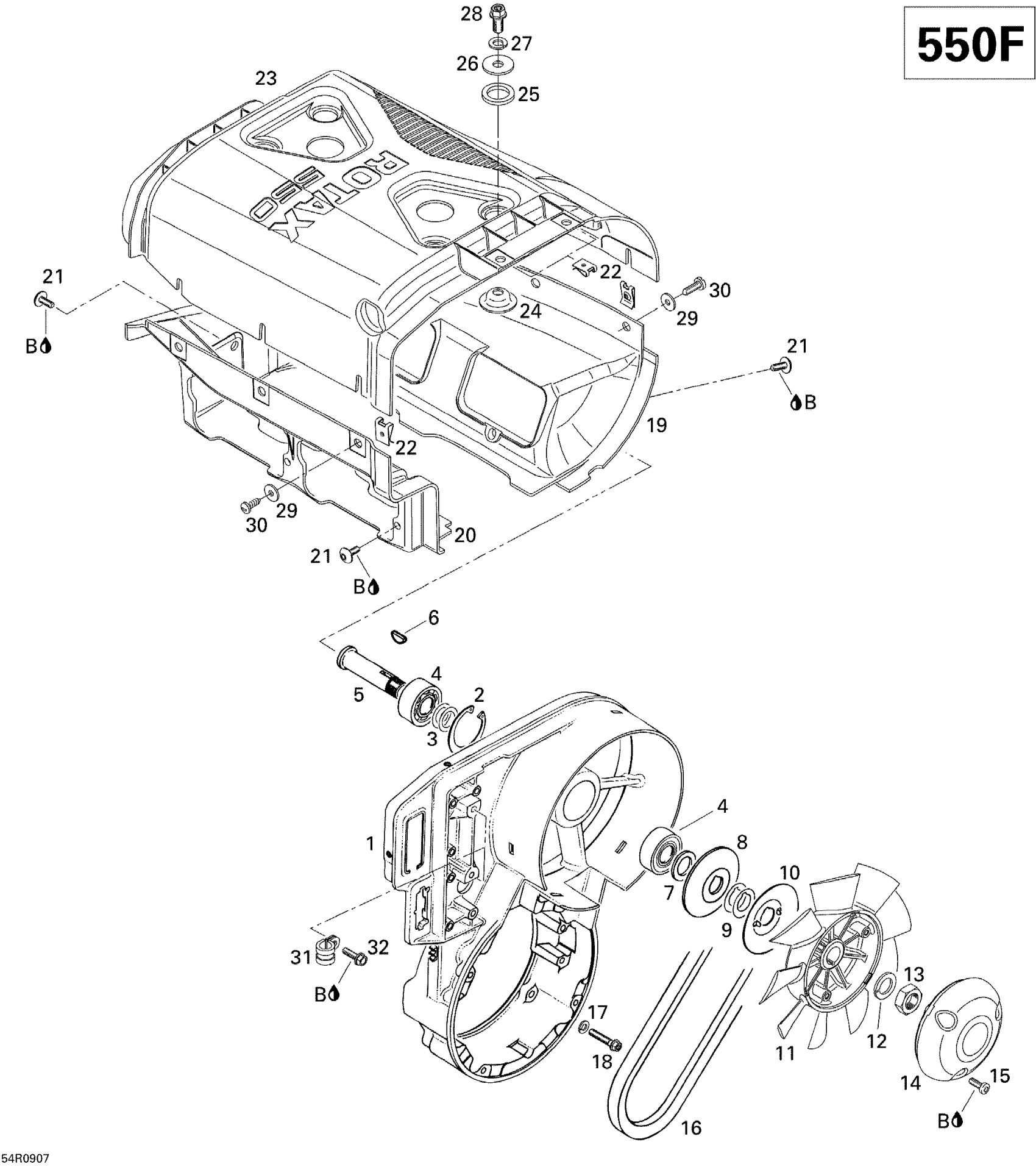 Ski-Doo Freestyle Back Country, 2009 Fan & Cylinder Cowls V2 Diagram
