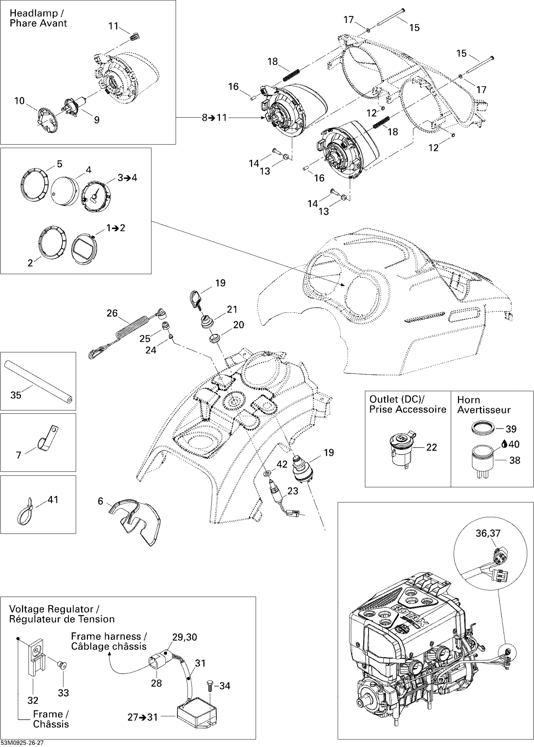 RH HEADLAMP ASS'Y - Call your local BRP dealership | Includes 8 to 11