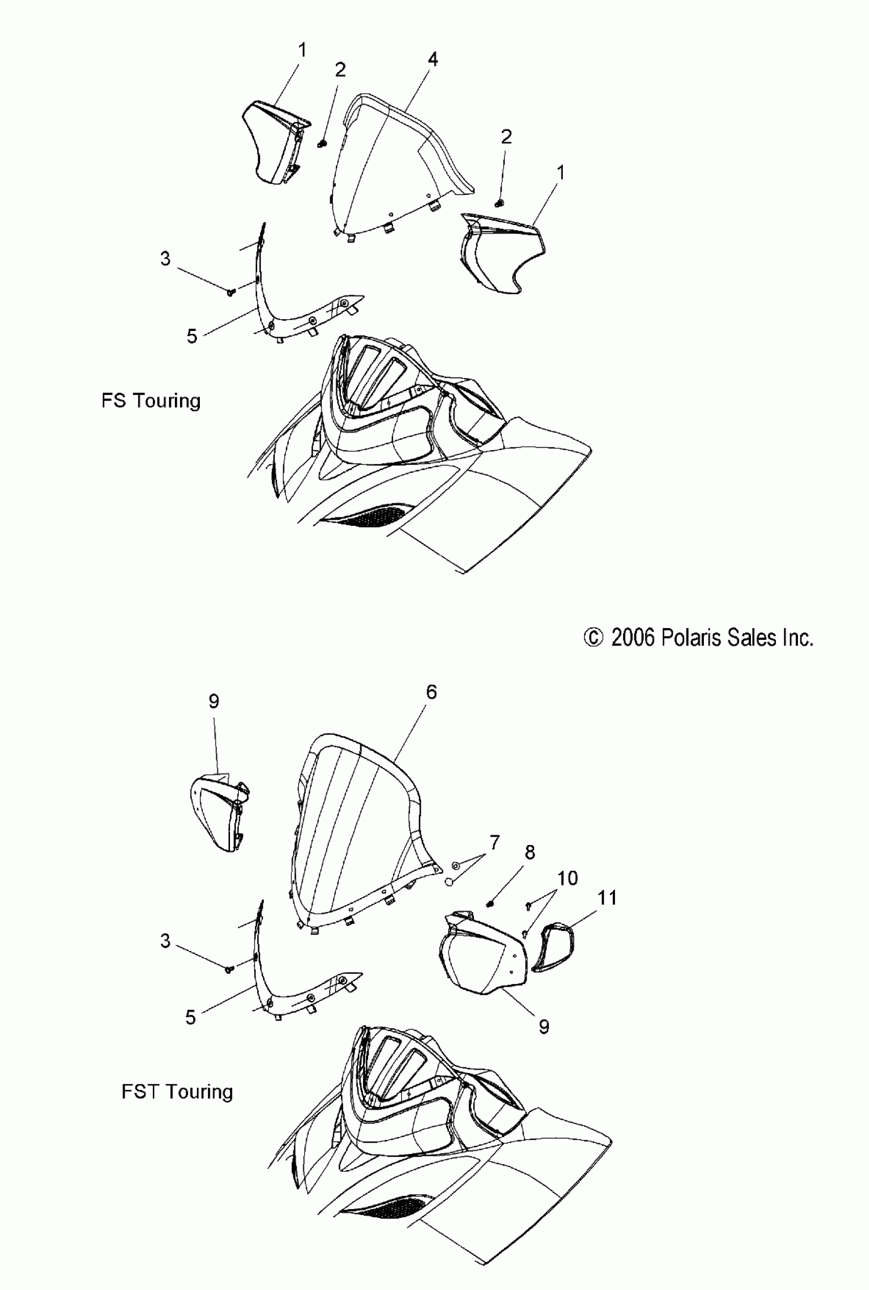 Polaris FS/FST IQ TOURING - S07PT7ES/PT7EE/PT7FS/PT7FE WINDSHIELD - S07PT7ES/PT7EE/PT7FS/PT7FE (49SNOWWINDSHLDFSTOUR) Diagram