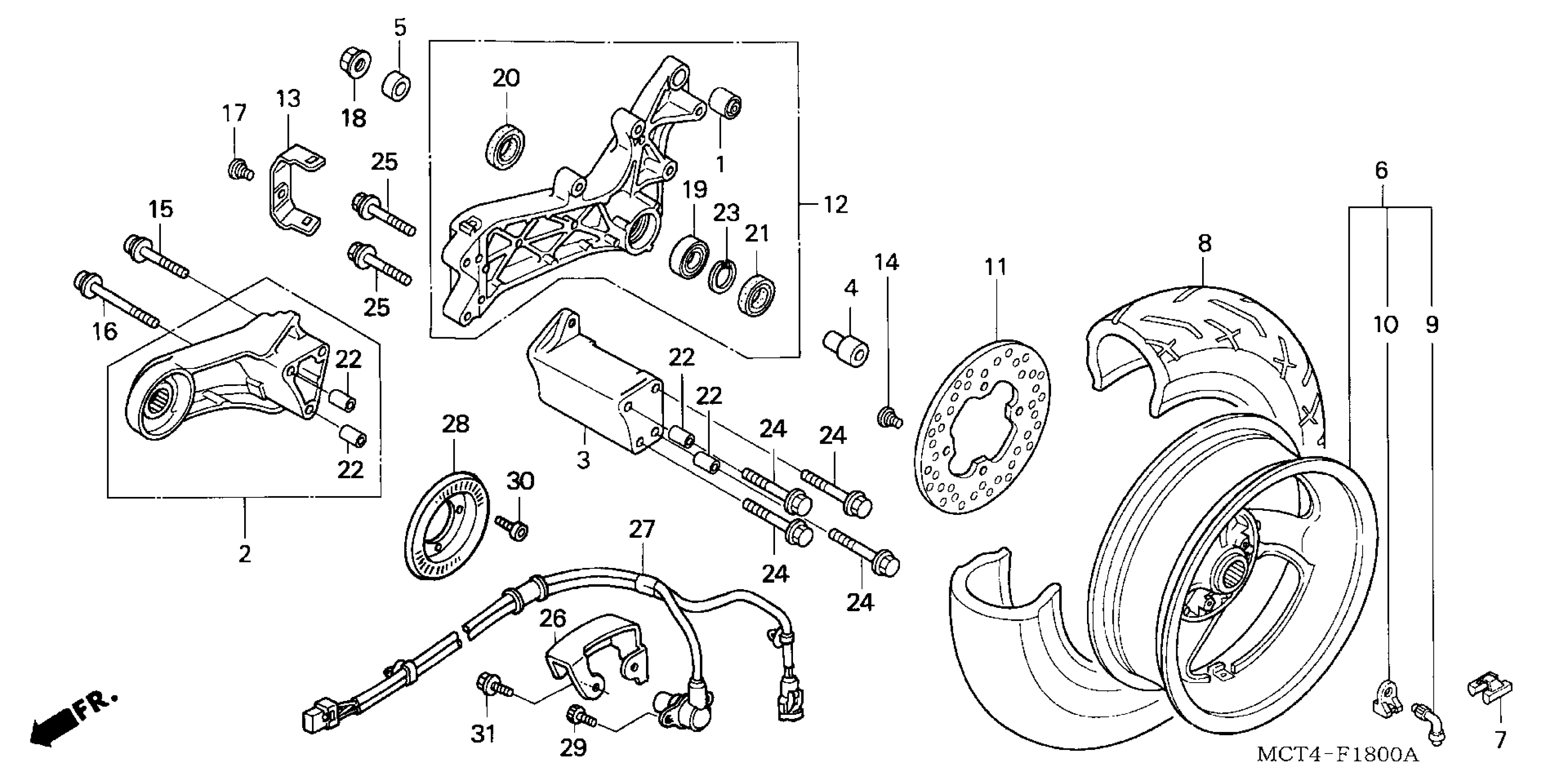Honda FSC600AAC (04) SILVER WING, JPN, VIN# JH2PF014-4K100001 TO JH2PF014-4K199999 REAR WHEEL Diagram