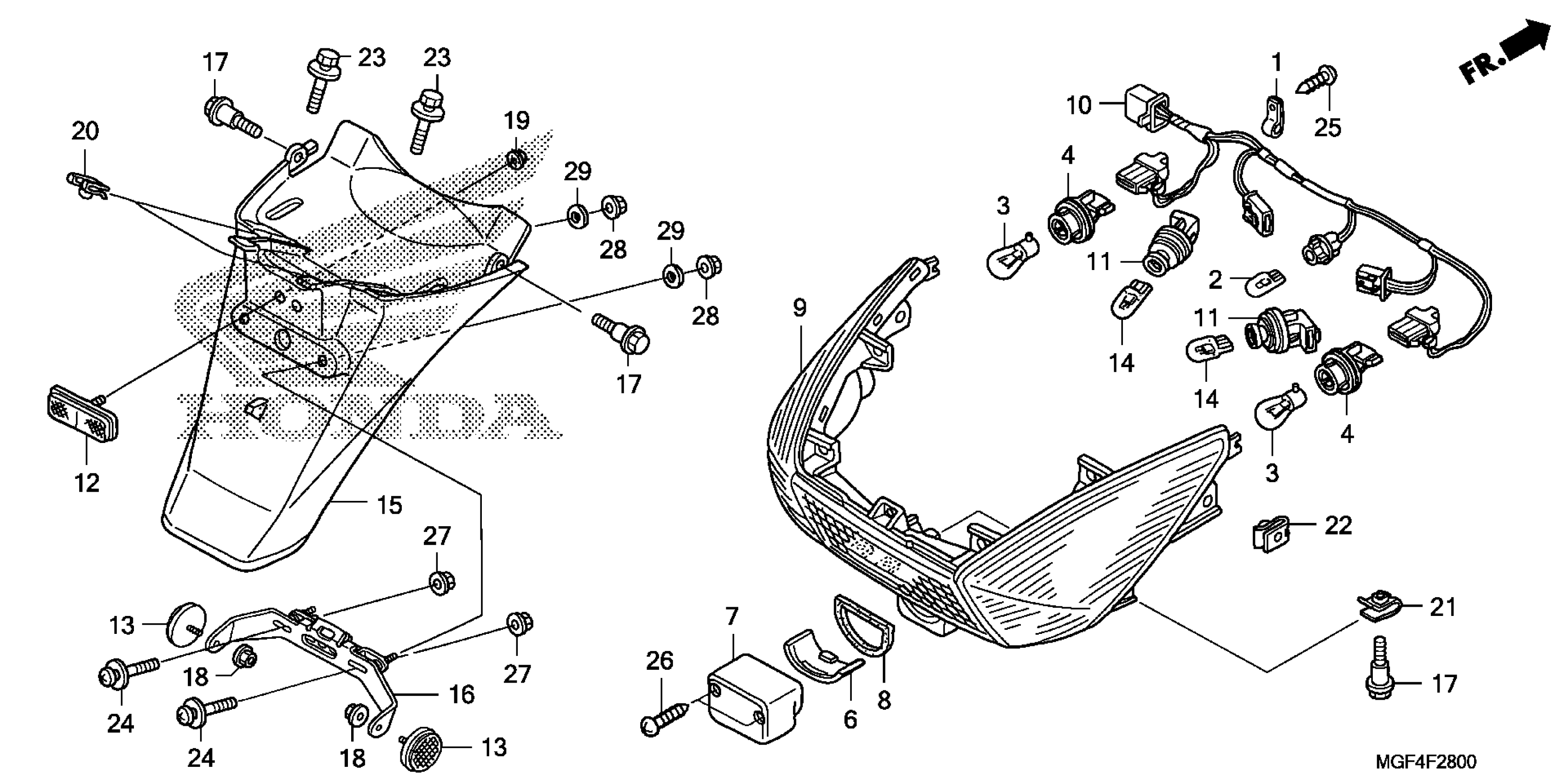 Honda FSC600AAC (12) SILVER WING ABS, JPN, VIN# JH2PF014-CK900001 TO JH2PF014-CK999999 TAILLIGHT@REAR FENDER Diagram