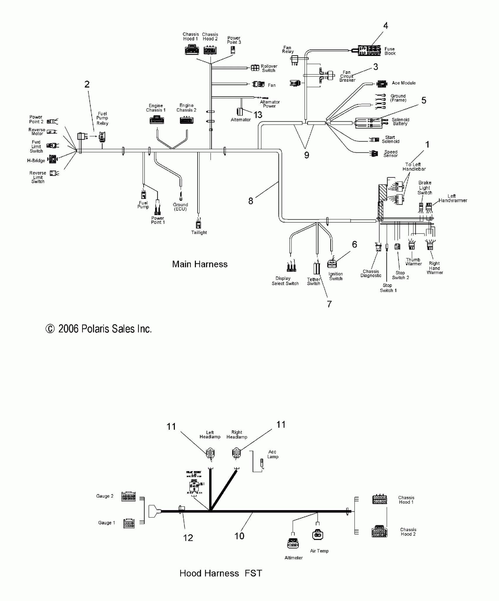 Polaris FST IQ SWITCHBACK - S07PS7FS/FE WIRE HARNESS, MAIN/HOOD - S07PS7FS/FE (49SNOWWIREHARNESSFSTSWTCH) Diagram