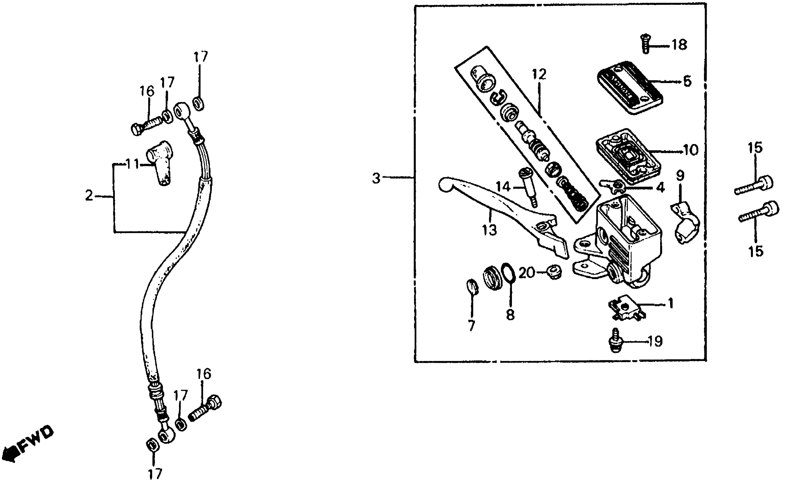 Honda FT500A (83) ASCOT, JPN, VIN# JH2PC070-DM000001 TO JH2PC070-DM002498 FR. BRAKE MASTER CYL. Diagram