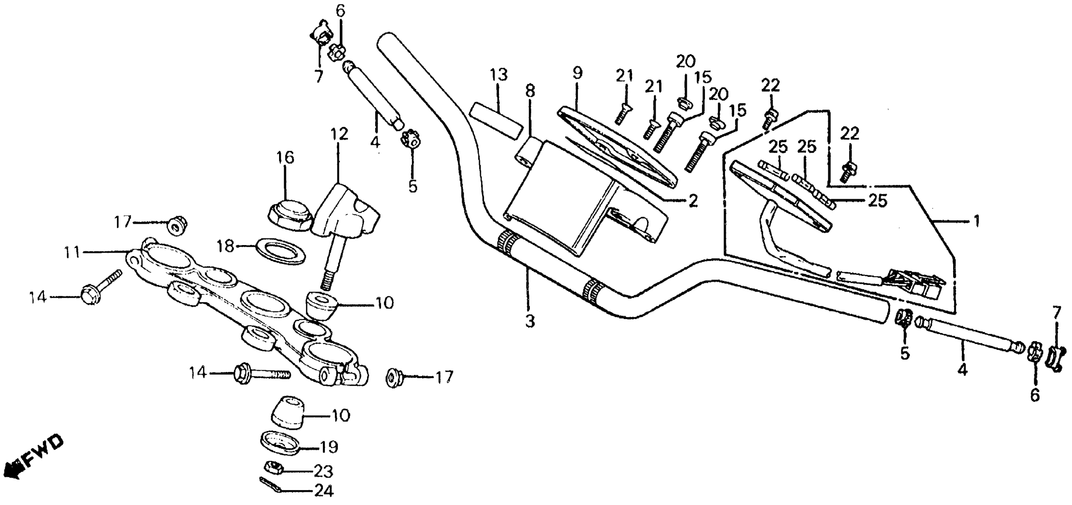 Honda FT500A (83) ASCOT, JPN, VIN# JH2PC070-DM000001 TO JH2PC070-DM002498 HANDLEBAR + TOP BRIDGE Diagram