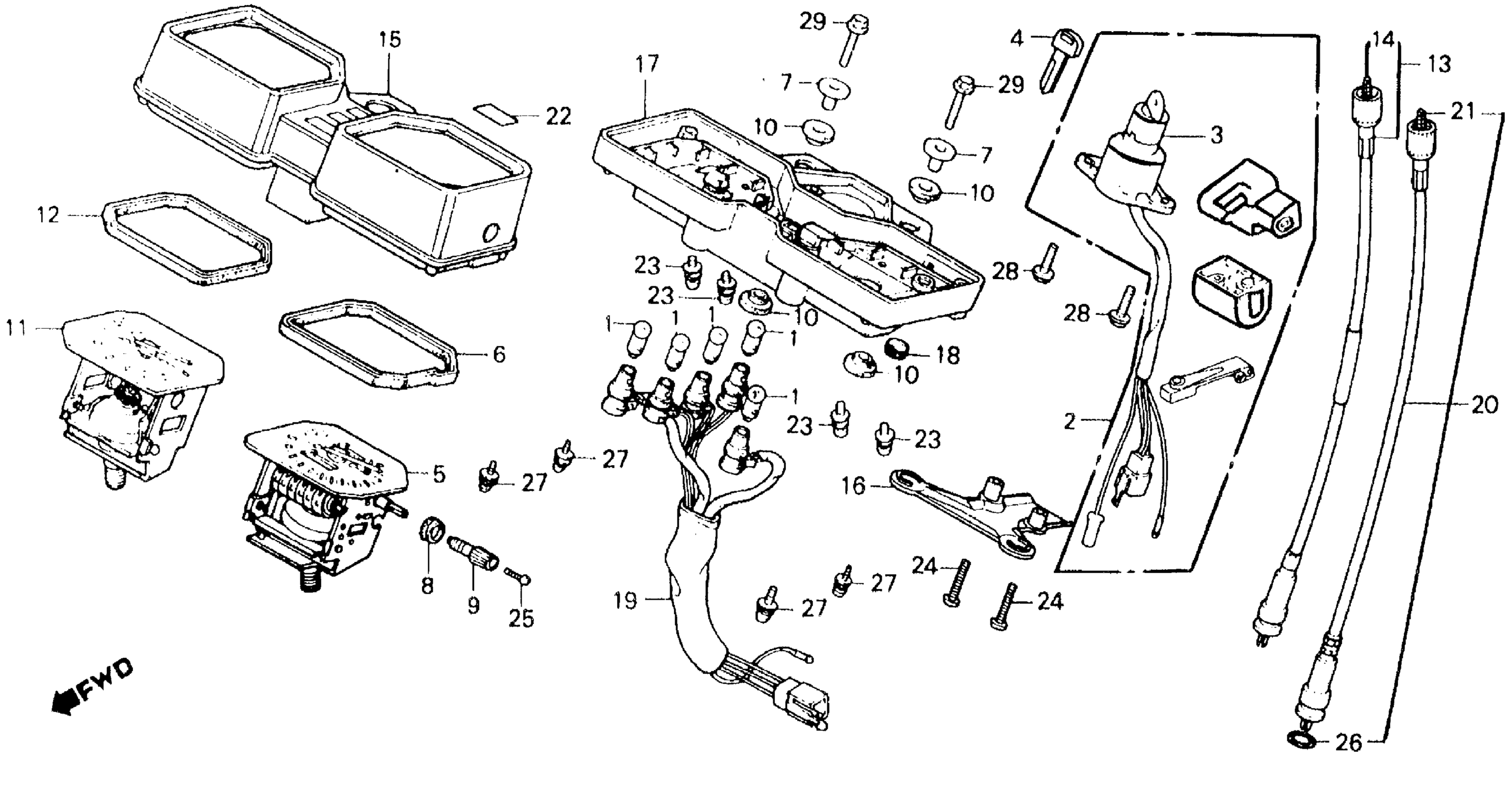 Honda FT500A (83) ASCOT, JPN, VIN# JH2PC070-DM000001 TO JH2PC070-DM002498 SPEEDOMETER + TACHOMETER + KEY SET Diagram