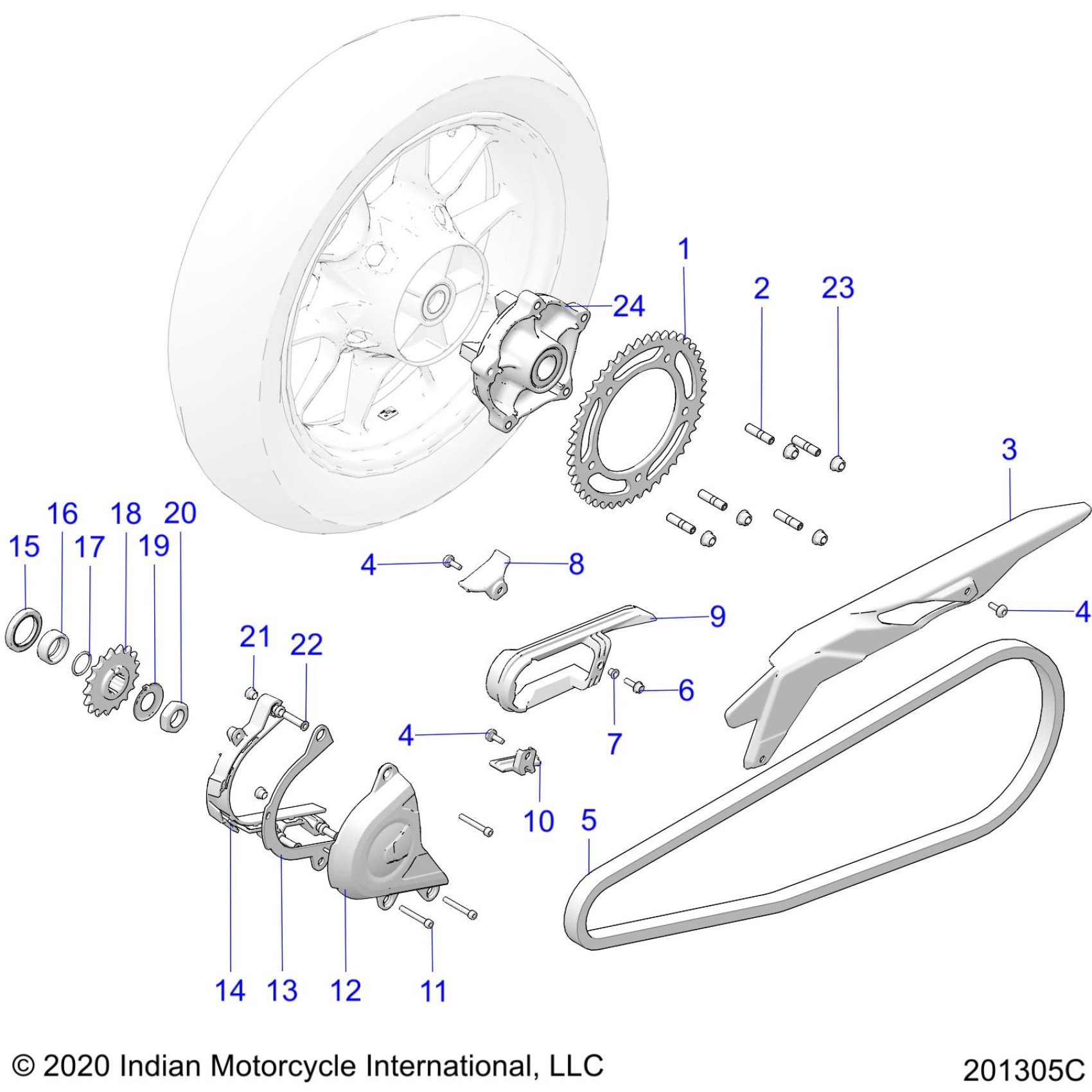 Polaris FTR 1200 CARBON ALL OPTIONS (R03) - N22RZR25A8/B8/C8/E8 DRIVE TRAIN, SPROCKETS, GUARDS AND CHAIN - N22RZR25 (201305C) Diagram