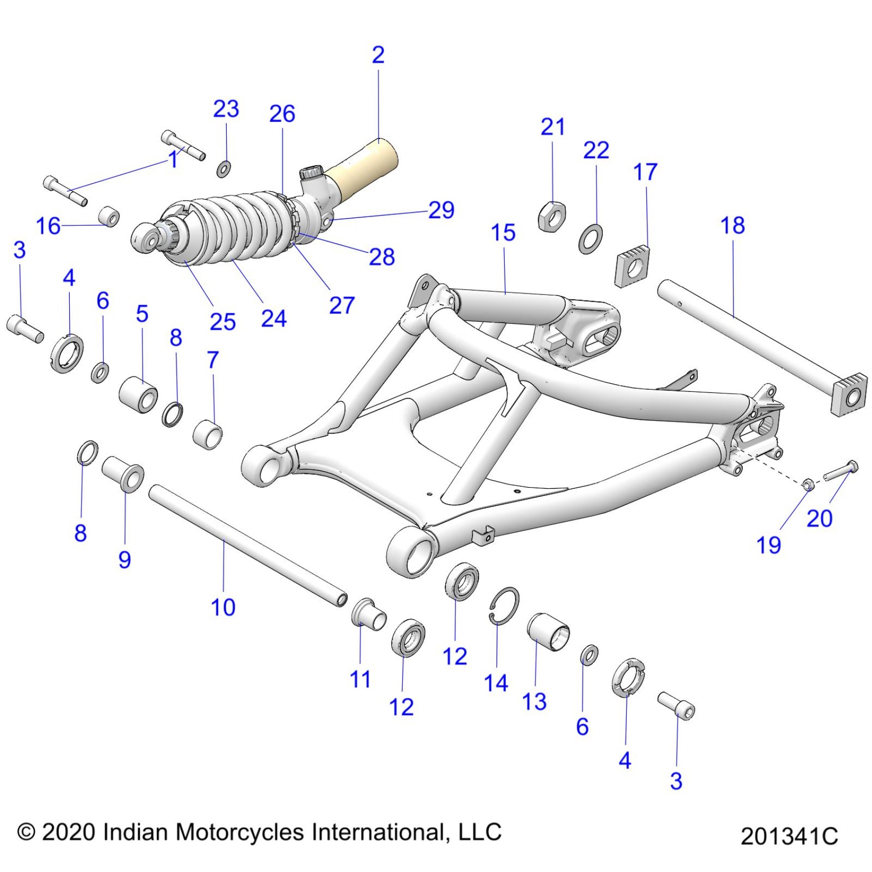 Polaris FTR 1200 CARBON ALL OPTIONS (R03) - N22RZR25A8/B8/C8/E8 SUSPENSION, REAR SWING ARM/SHOCK - N22RZR25 (201341C) Diagram