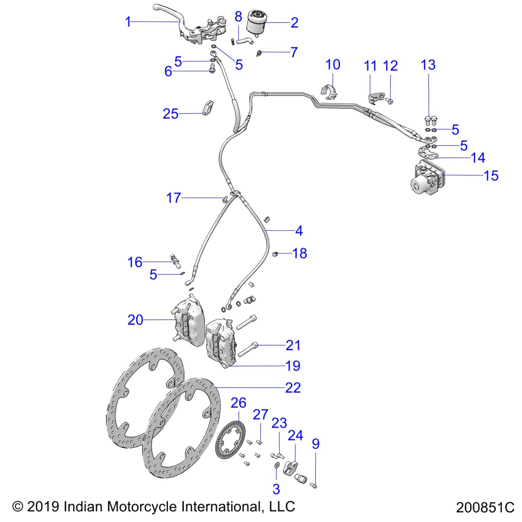 Polaris FTR 1200 RALLY (R05) - N20RTT22A9/B9/C9/E9 BRAKES, FRONT ASM. - N20RTT22 (200851C) Diagram
